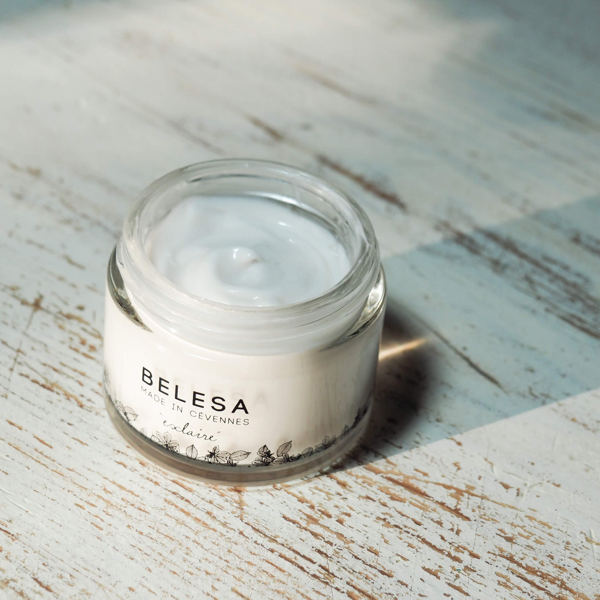 Ontdek Belesa Esclaire, een natuurlijke dag- en nachtcrème ontwikkeld in het hart van de Franse Cévennes. Deze zijdezachte gezichtscrème hydrateert intensief, voedt de huid en herstelt haar natuurlijke glans. Geschikt voor alle huidtypes, ook voor de gevoelige huid.