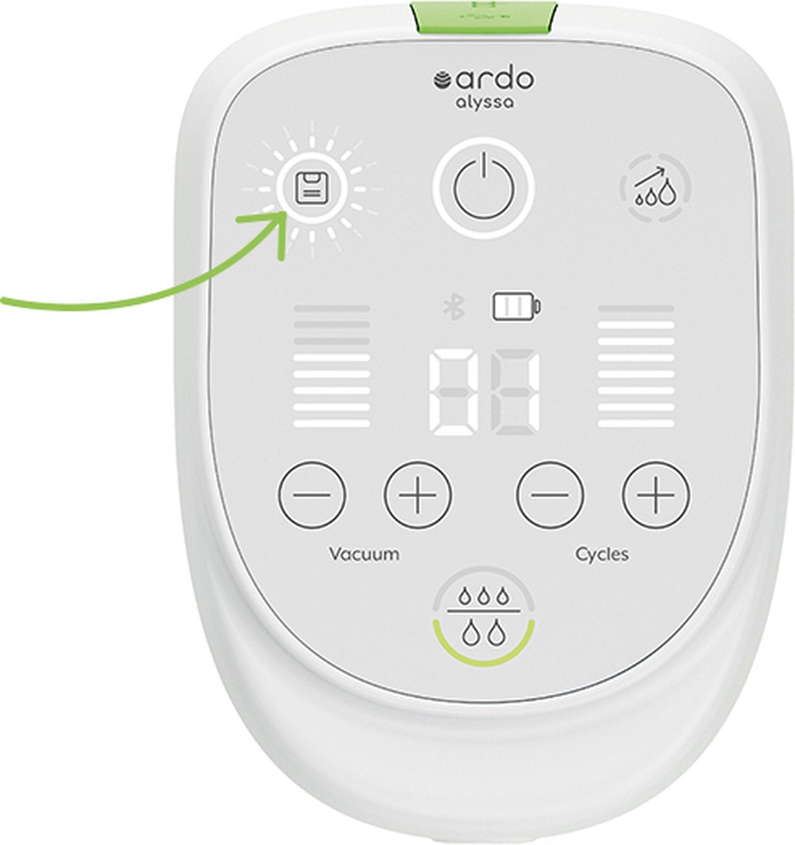 Daarnaast beschikt de Ardo Alyssa Double over de Memory Plus knop. De Memory Plus knop stelt je in staat om je persoonlijke afkolfprogramma op te slaan en te gebruiken. Jouw kolfpatroon is een unieke combinatie van zuigkracht en zuigfrequentie met verschillende duur. Als je eenmaal de ideale instellingen hebt gevonden die je melk het beste laten stromen, kun je deze eenvoudig opslaan door op de Memory Plus-knop te drukken. Met deze knop sla je eenvoudig de gegevens van je voorgaande afkolfsessies op, waarna deze automatisch weer worden opgeroepen de volgende keer dat je gaat kolven. En dat met slechts één druk op de knop! De Memory functie onthoud dus je gehele afkolfsessie en niet alleen de laatste instellingen. Doordat de Ardo Alyssa borstkolf de afkolftijd onthoudt, stopt de borstkolf ook vanzelf weer. Ultiem gemak!