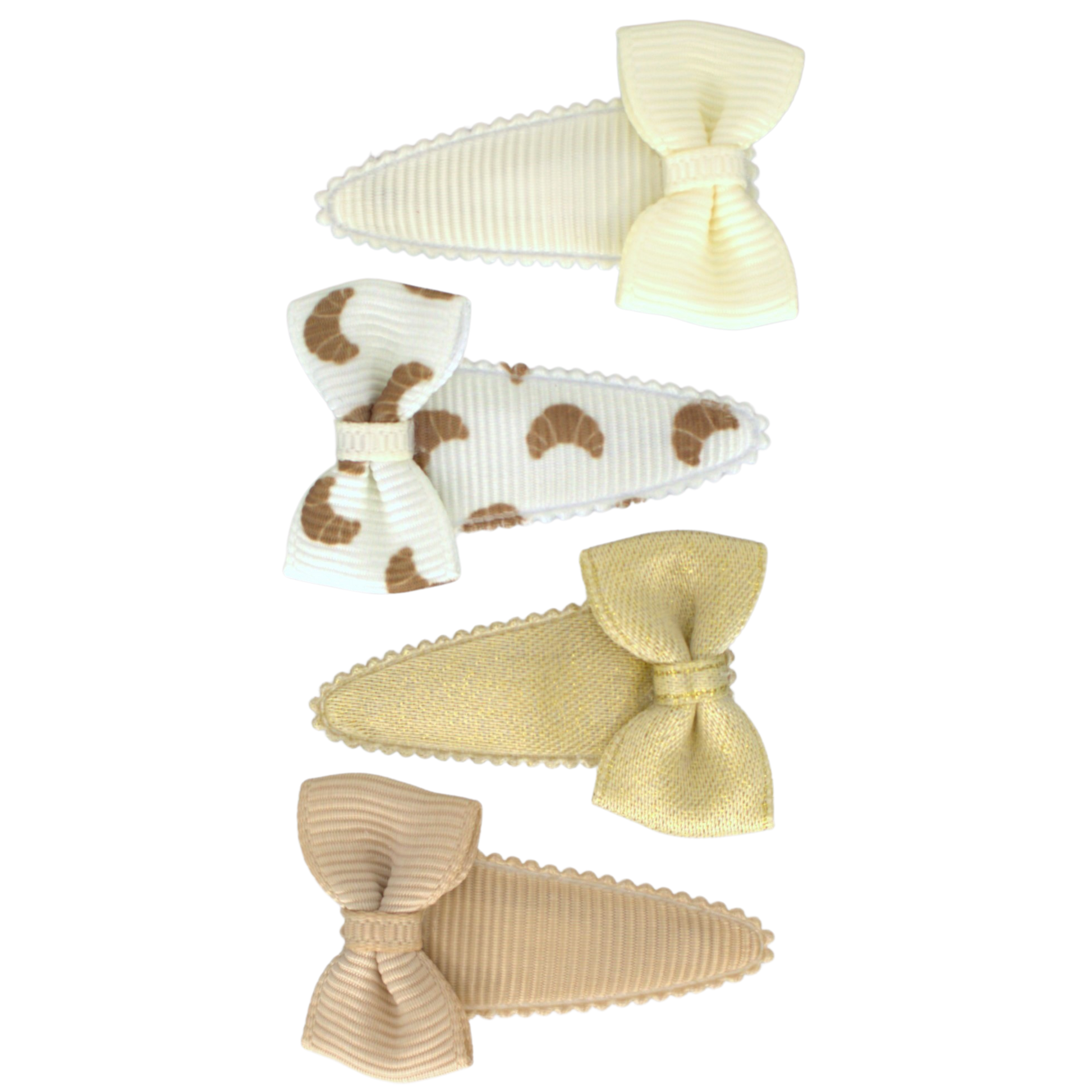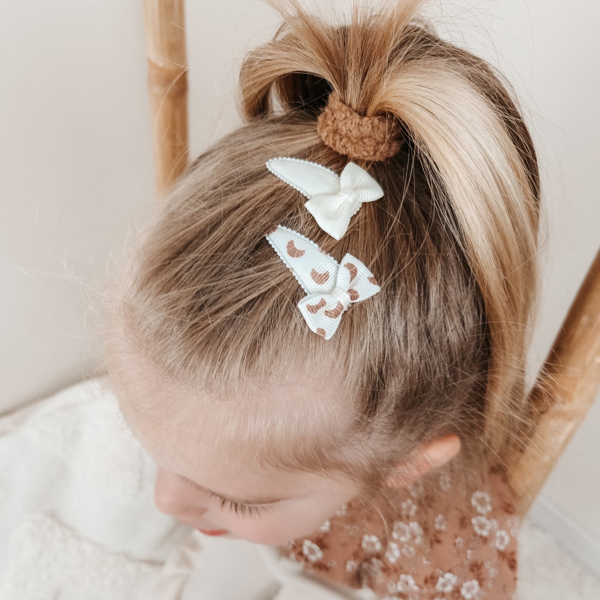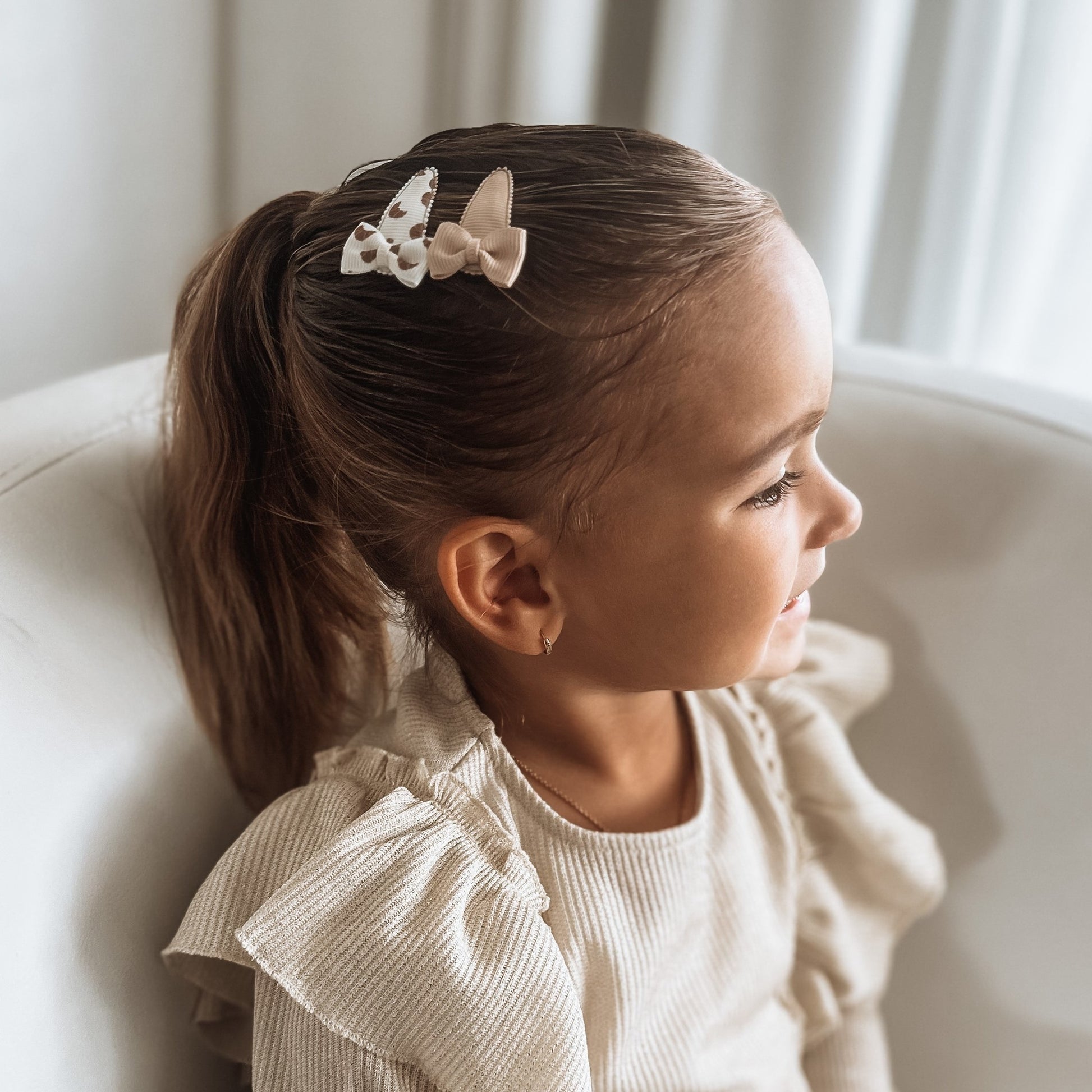 Setje van extra kleine haarspeldjes met strik van 3 cm voor de eerste lokjes. Stevige haarspeldjes die goed blijven zitten.