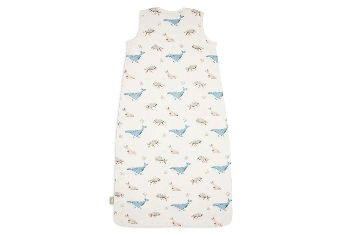 Dit zachte jersey slaapzakje is perfect voor warme nachten en heeft een TOG-waarde van 0.5. De leuke all-over print met zeedieren zoals visjes, walvissen en zeehondjes stimuleert de fantasie van je kleintje.