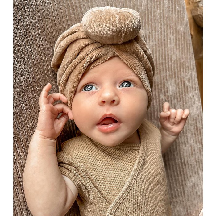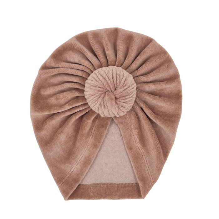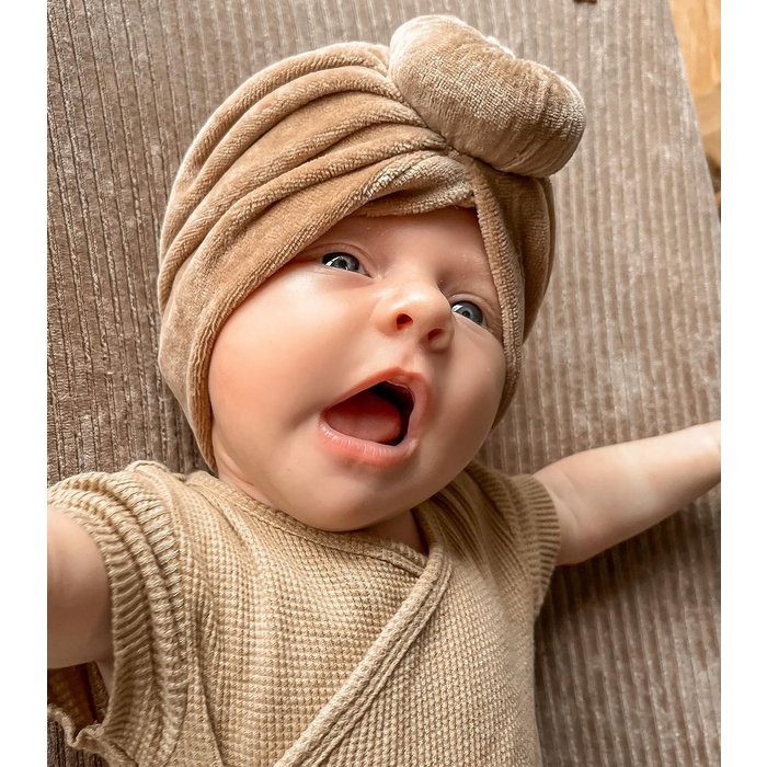 Verwen je kleine meid met het elegante Velvet Mae turban mutsje. Dit schitterende mutsje is gemaakt van de zachtste, meest luxueuze stof en heeft een speels donut/knot-detail aan de voorkant. Perfect voor speciale gelegenheden of gewoon voor alledaagse stijl.