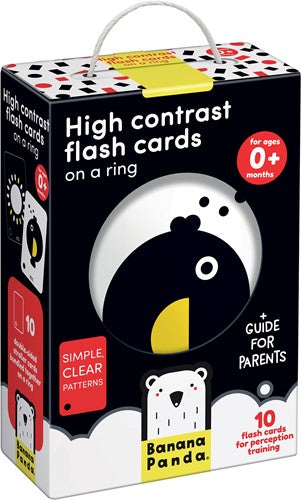 Stimuleer de hersenen van je baby vanaf de geboorte met de Banana Panda Hoog contrast Flitskaarten aan ring. Deze set van 20 dubbelzijdige flitskaarten is speciaal ontworpen voor de allerkleinsten. De grote, contrastrijke afbeeldingen en eenvoudige patronen trekken de aandacht van je baby en ondersteunen de ontwikkeling van het gezichtsvermogen en de concentratie. Dankzij de bijgeleverde gids, geschreven door een kinderpsycholoog, leer je hoe je je baby optimaal kunt stimuleren.