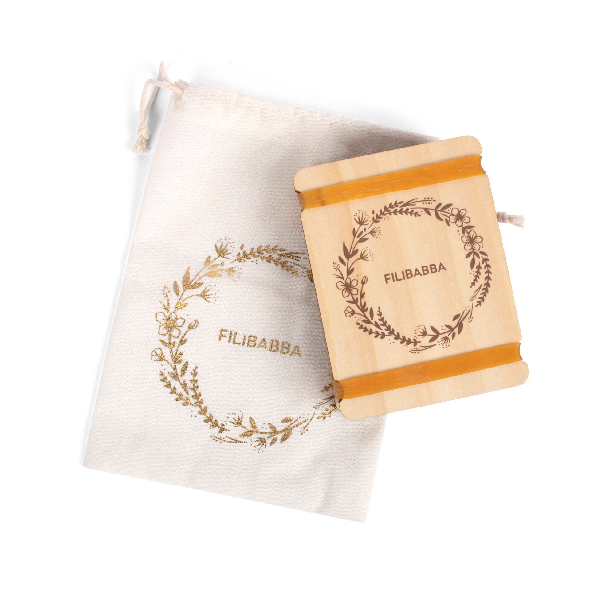 De set bevat een lichtgewicht houten bloemenpers met absorberend papier en kartonnen inlegstukjes, geleverd met een handige katoenen tas en instructies. De pers biedt plaats aan maximaal vier lagen bloemen en kan eenvoudig worden vastgezet met elastiekjes, zonder schroeven.