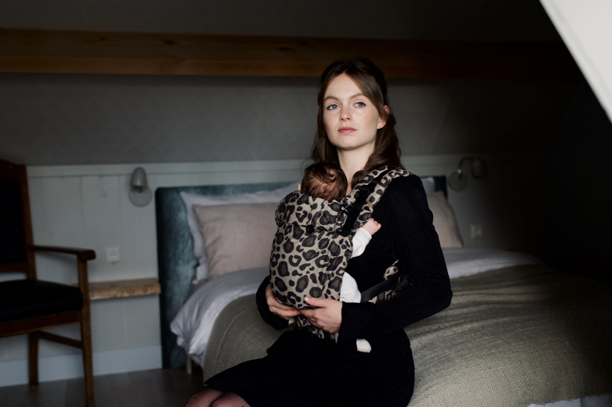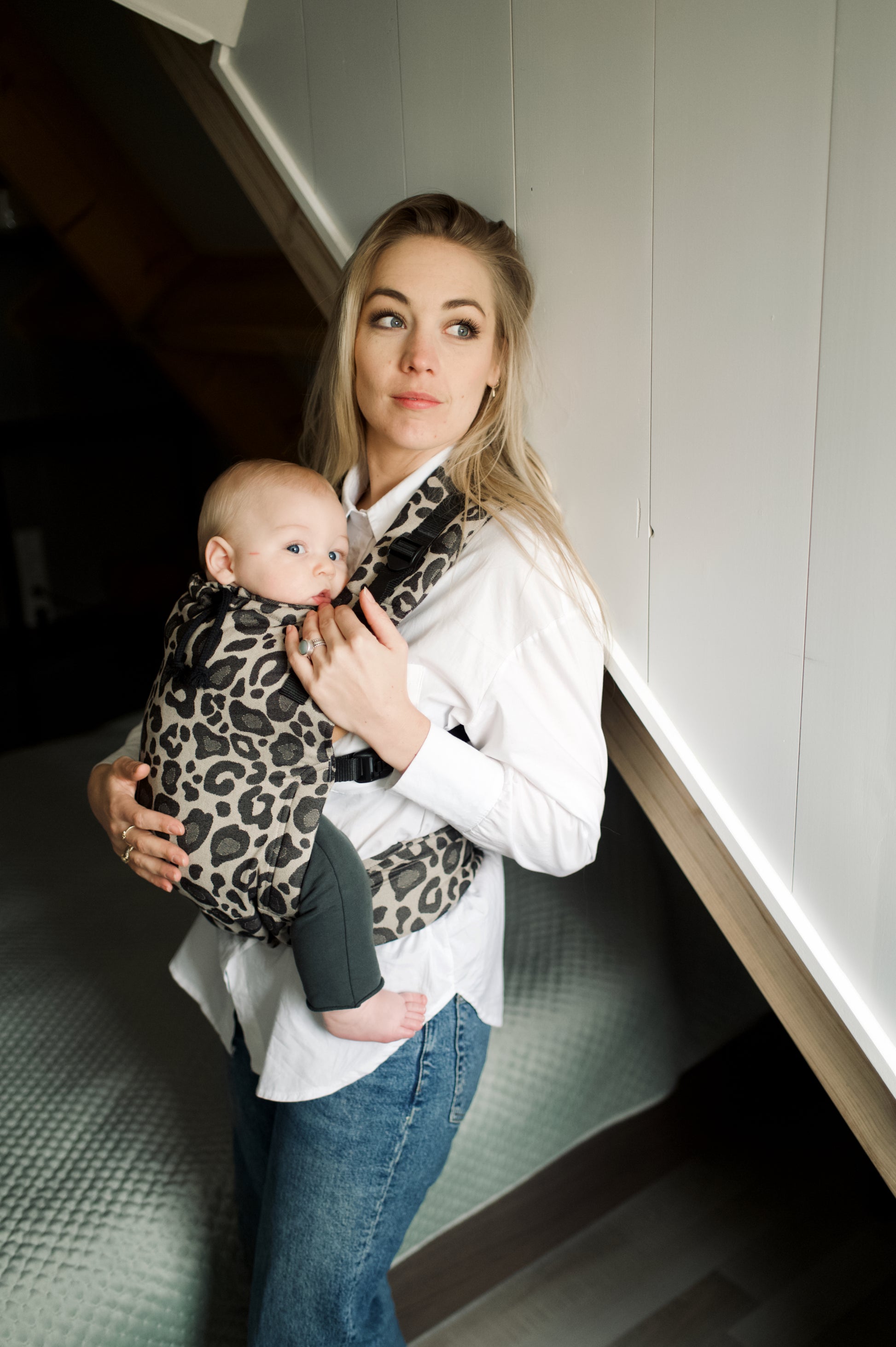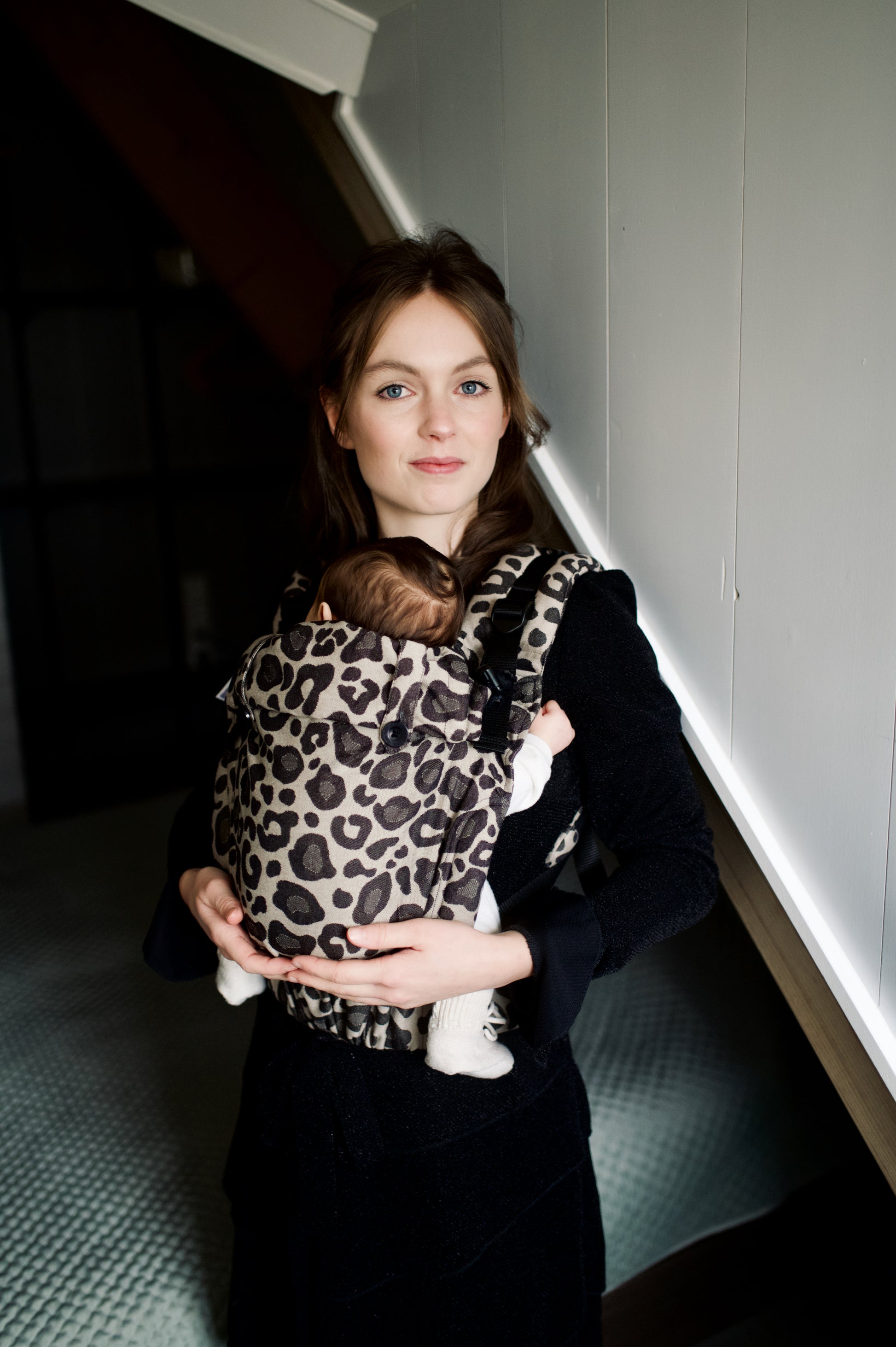 - De schouderbanden worden recht gedragen en lopen naar het rugpand van de draagzak.
