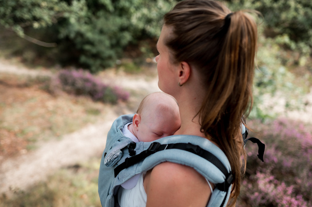- De schouderbanden worden recht gedragen en lopen naar het rugpand van de draagzak.