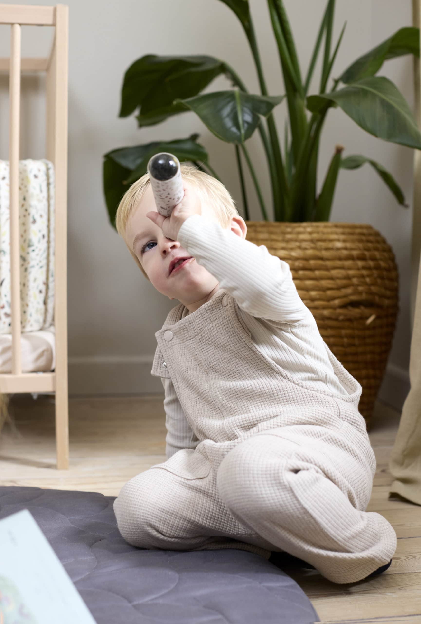 Ontdek de magie van het kristallen kaleidoscoop! Dit schattige speelgoed biedt eindeloos plezier. Draai het kaleidoscoop en laat het prisma aan het einde je omgeving transformeren in speelse patronen.