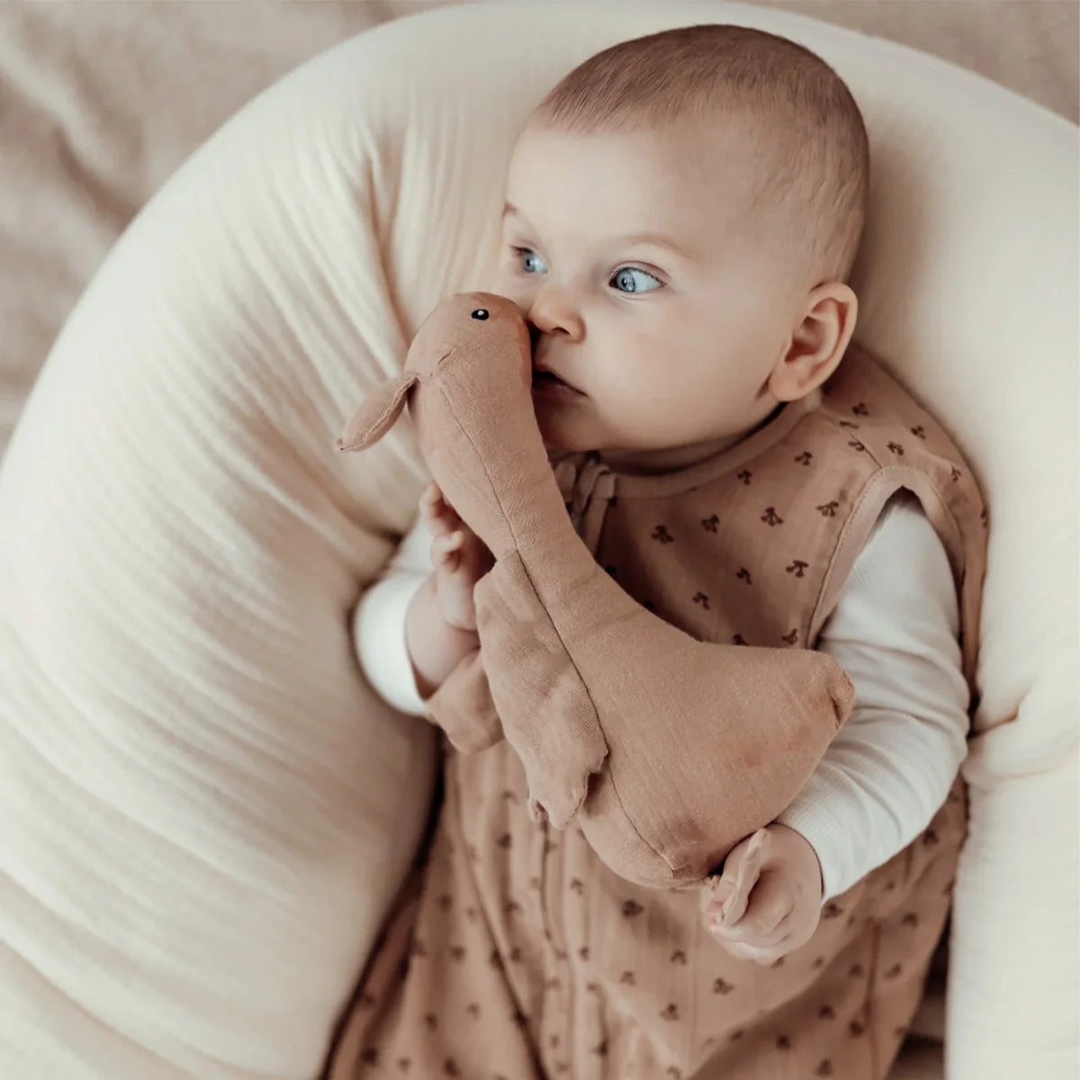 - Duurzaam en Milieuvriendelijk: Deze knuffel is gemaakt van 100% GOTS-gecertificeerd biologisch katoen en gevuld met gerecycled polyester. Zo draag je bij aan een betere wereld voor je kindje.