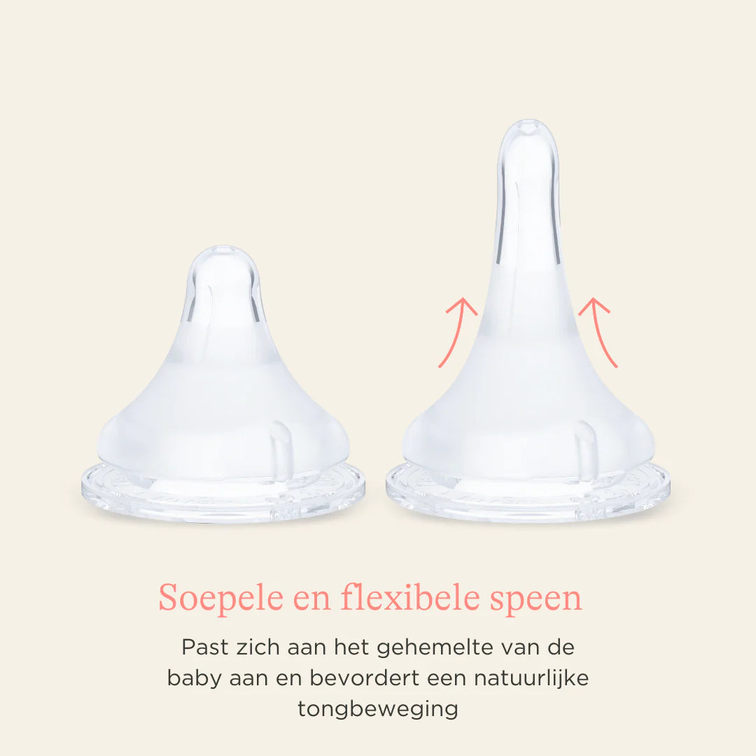 De Lansinoh drinkfles met de NaturalWave® speen is speciaal ontworpen zodat uw baby moedermelk kan blijven drinken, zelfs wanneer u niet samen bent. De NaturalWave® speen is gebaseerd op meer dan 50 jaar onderzoek en bevordert het natuurlijke drinkgedrag van de baby en de ontwikkeling van de mond. Een fijne oplossing die het afwisselen van borst en fles makkelijk en plezierig maakt.