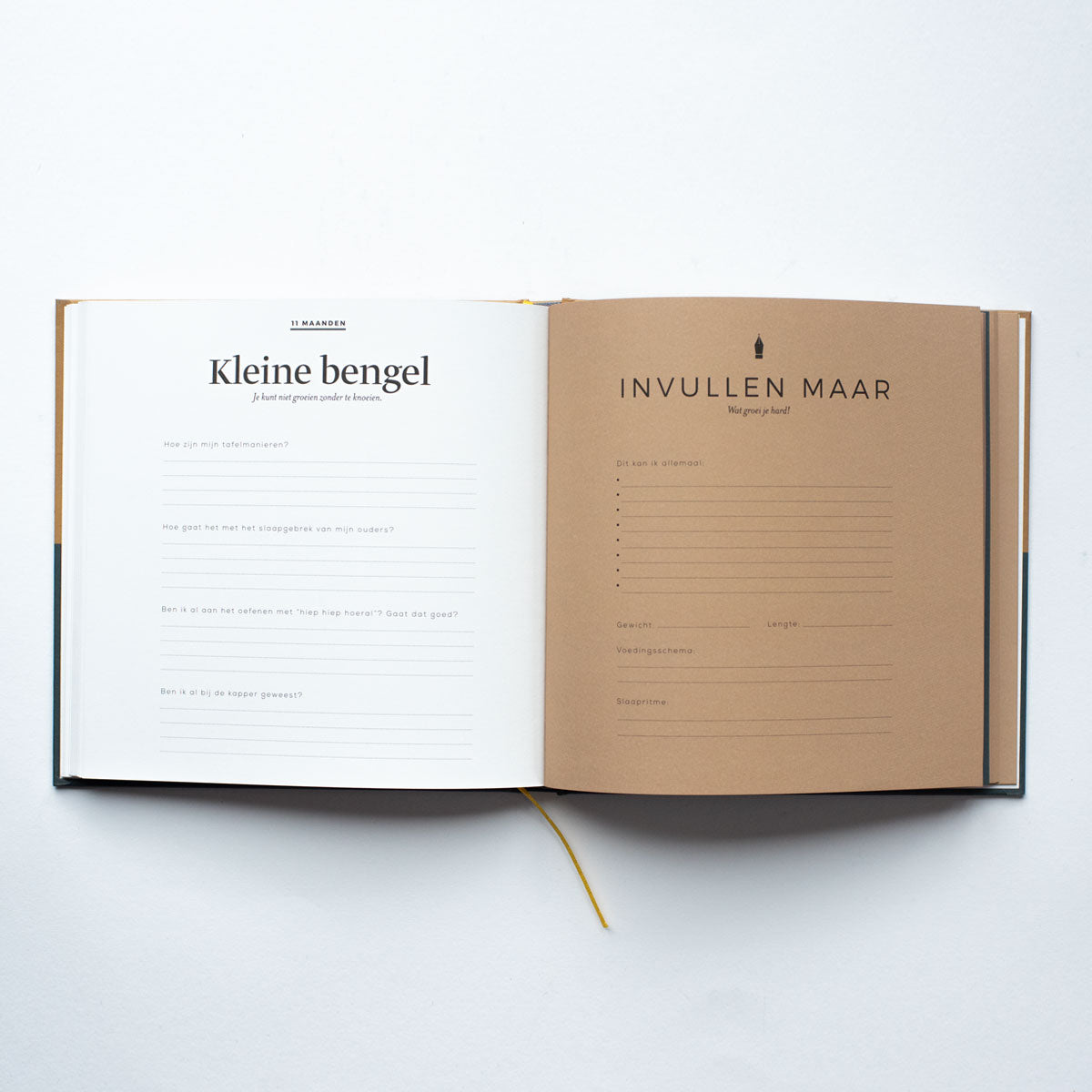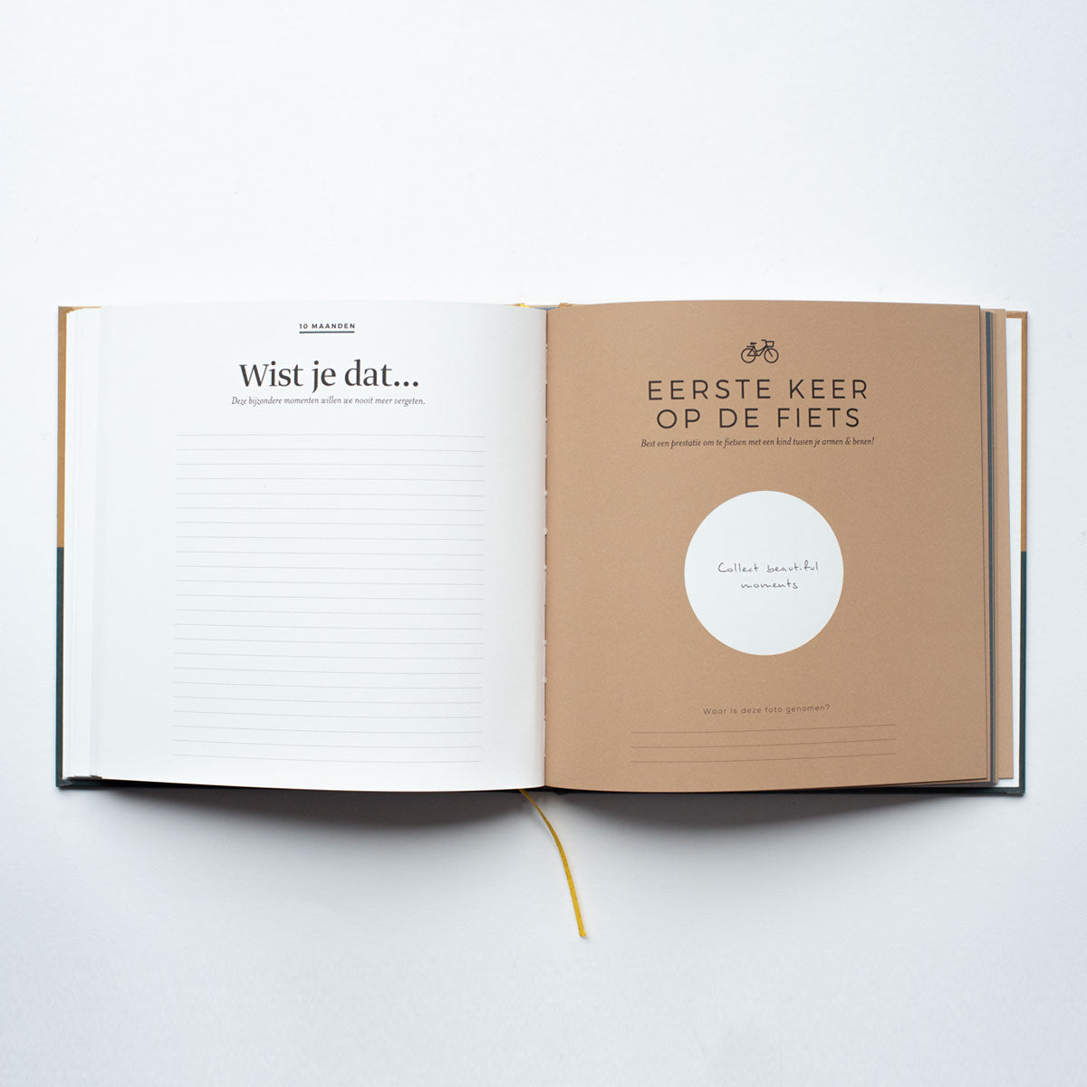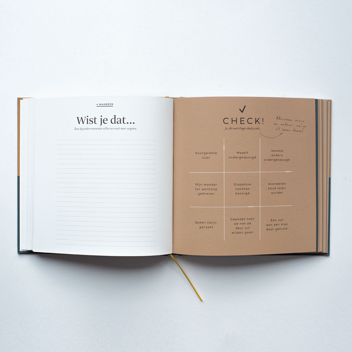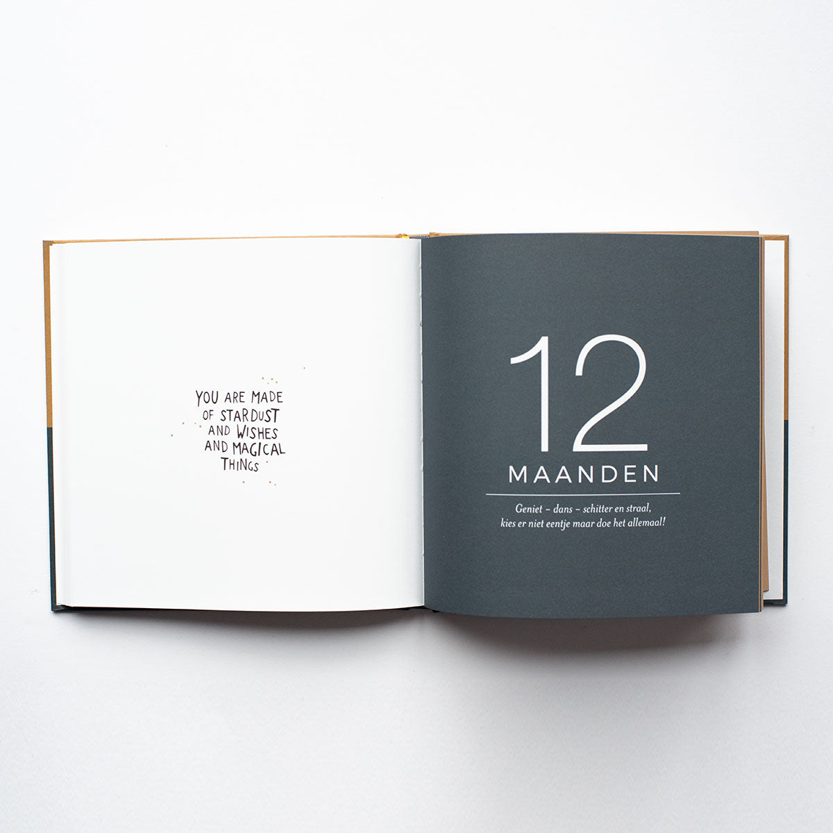 Binnenin het boek vind je boeiende vragen en maandelijks kun je een pagina vullen met 'Wist je datjes'. Er is overvloedige ruimte voor foto's, invullijsten en persoonlijke boodschappen om je herinneringen levend te houden.