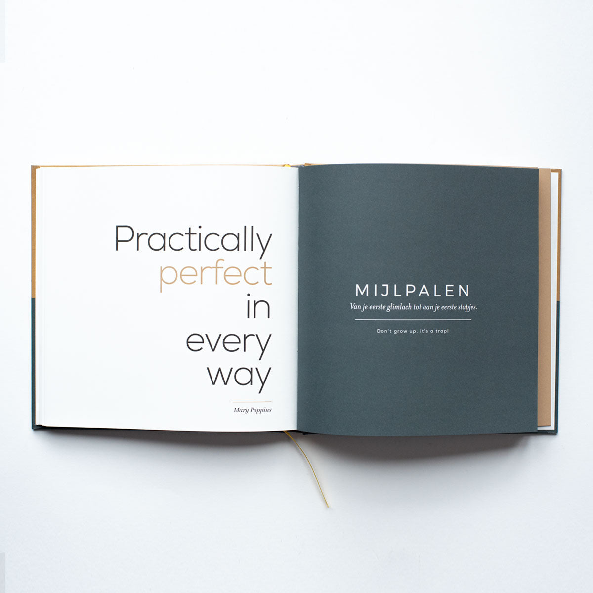 Een bijzonder kenmerk van dit invulboek is het aparte "Mijlpalen" hoofdstuk, waarin de belangrijkste momenten, zoals de eerste keer logeren, zwemmen, de eerste tandjes en nog veel meer, worden gevierd. Elk van deze mijlpalen wordt begeleid door passende vragen en ruimte voor een foto.