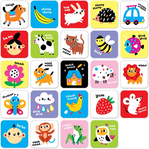 - Inhoud: 12 dubbelzijdige flashcards gebonden met een papieren touw (24 illustraties)
