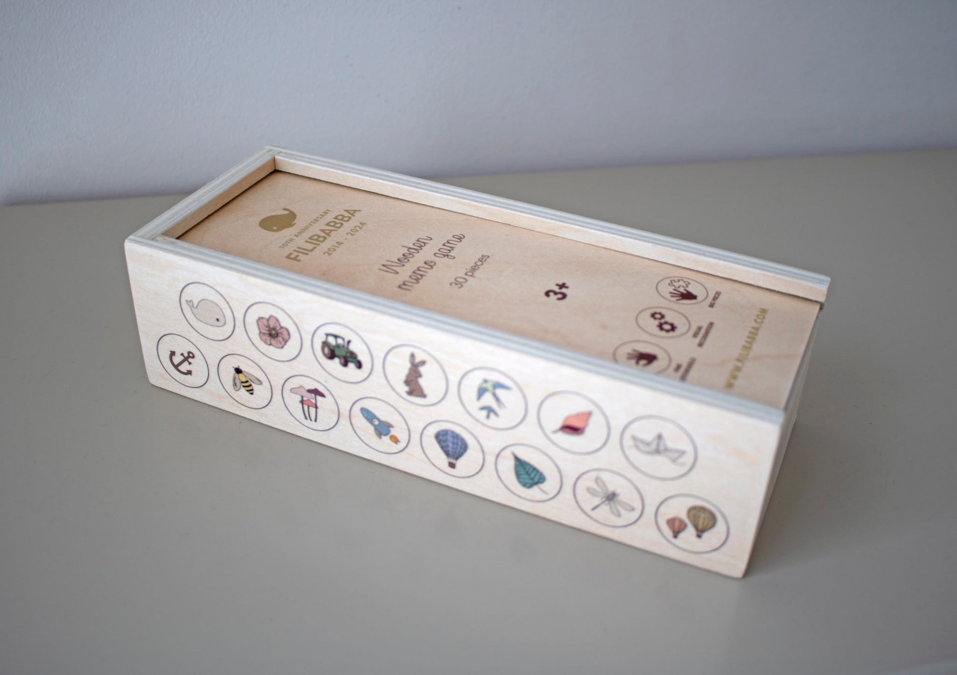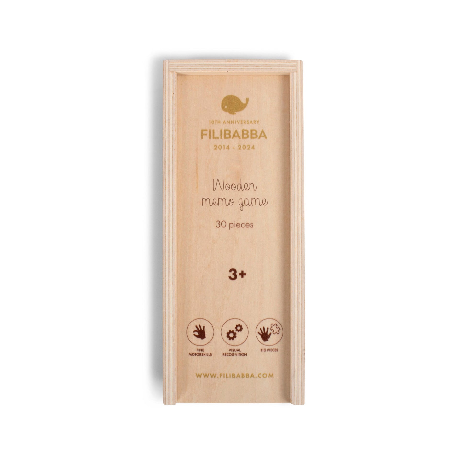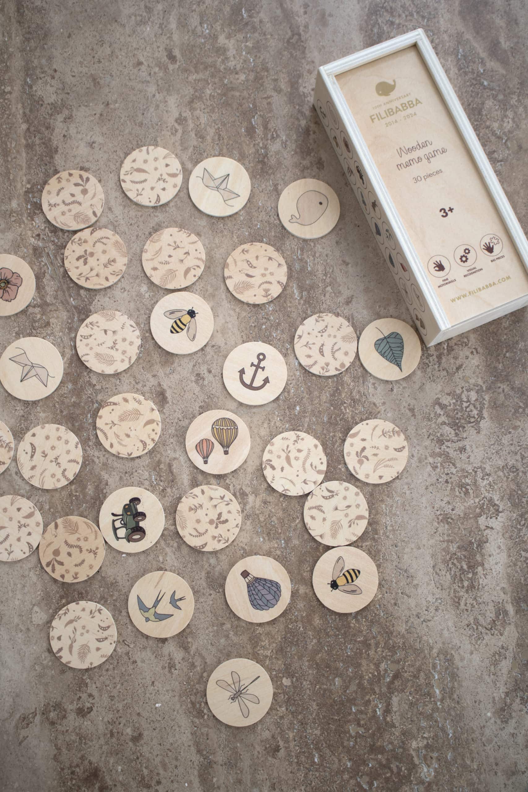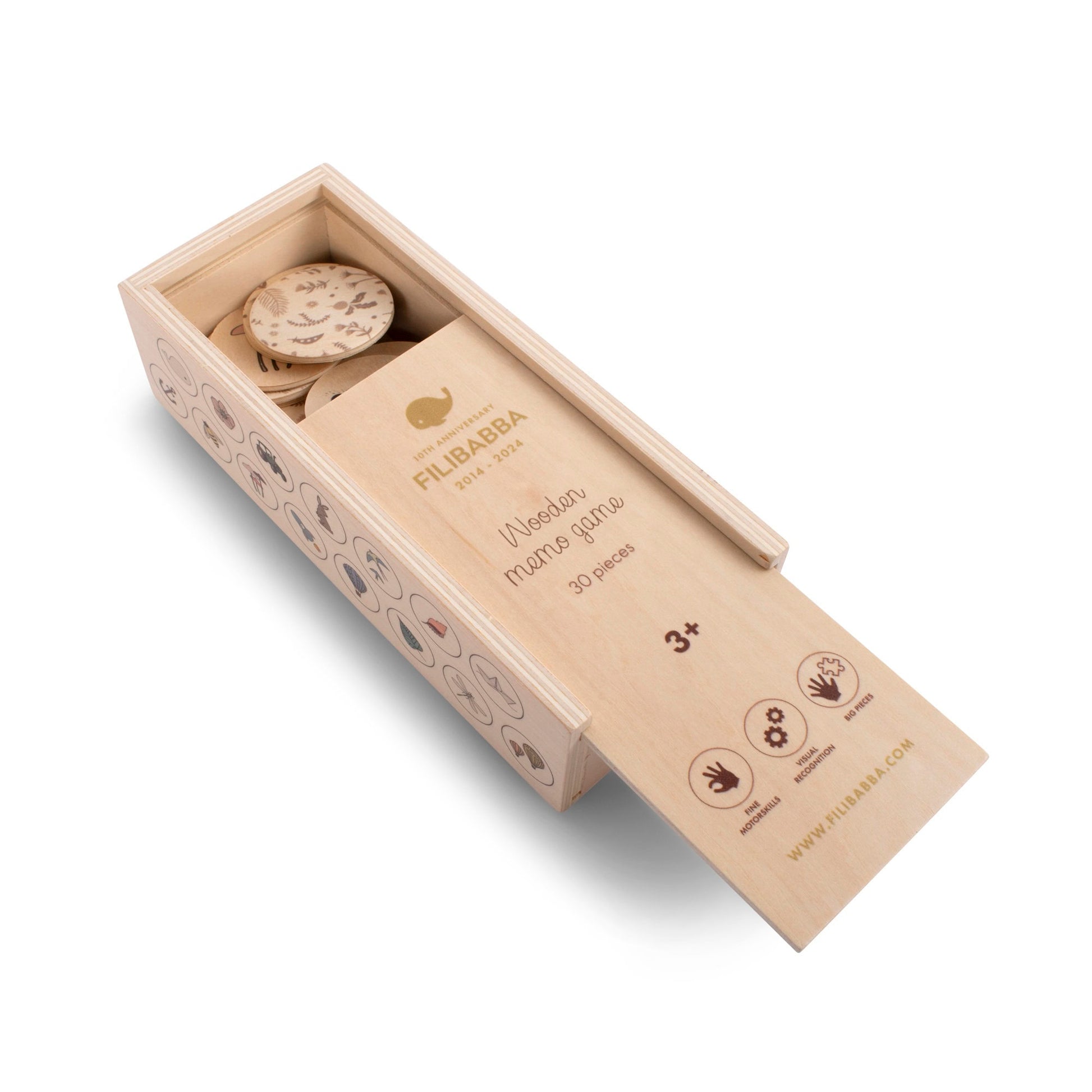 "Nog één keer spelen?" Boost het geheugen, de herkenning en de concentratie van je kind - allemaal terwijl ze plezier hebben. Het limited edition geheugenspel, gemaakt van stevig multiplex, bevat 30 stukjes met prachtige elementen uit de meest geliefde FILIBABBA-prints die zeker de nieuwsgierigheid van zowel kleine als oudere kinderen zullen prikkelen. Het premium spel wordt geleverd in een mooie houten doos voor opslag.