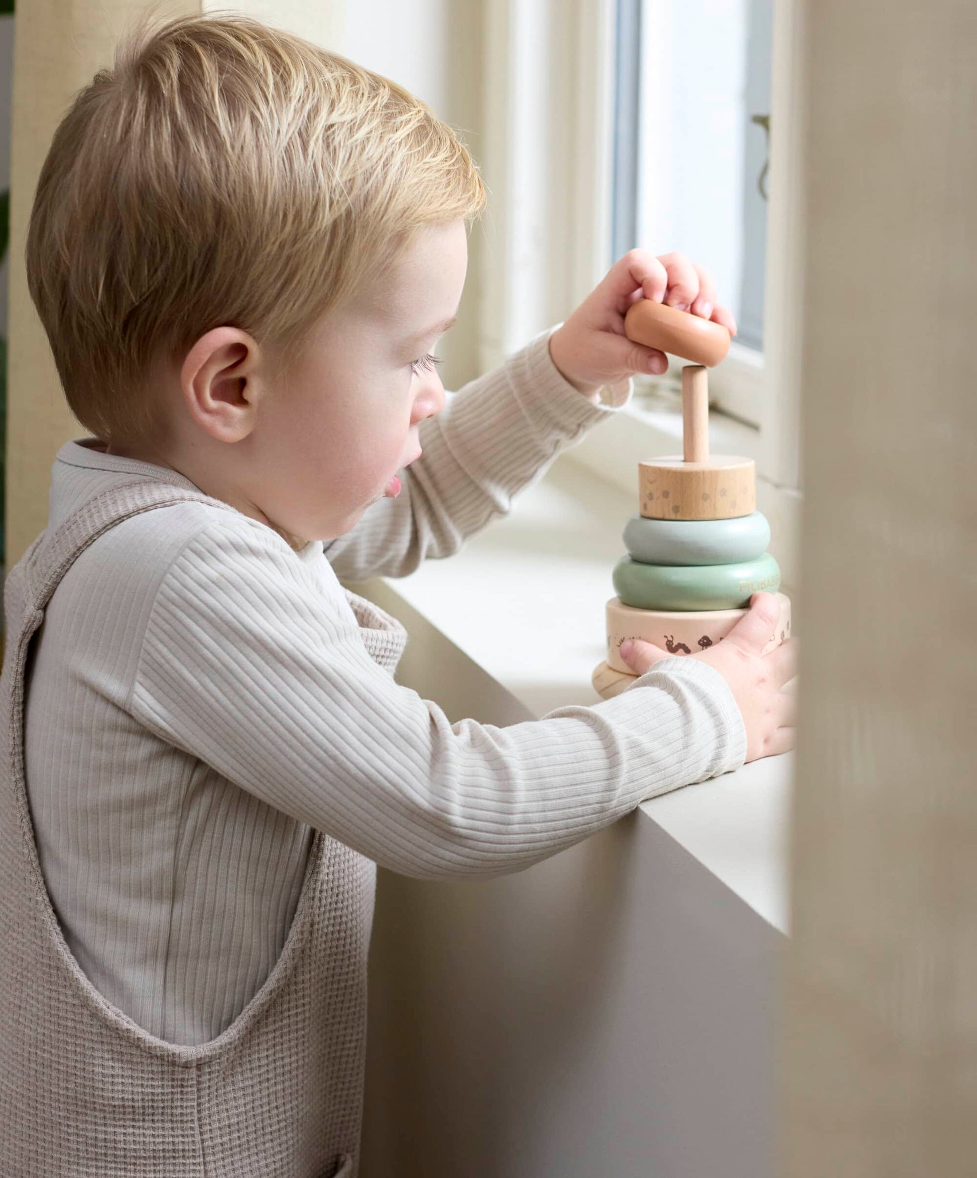 Met charmante houten details wordt het stapelspel prachtig verpakt in een kraftpapier doos. Geschikt voor kinderen vanaf 12 maanden, het is een geweldig cadeau dat de motorische vaardigheden en eindeloos onderzoek aanmoedigt.