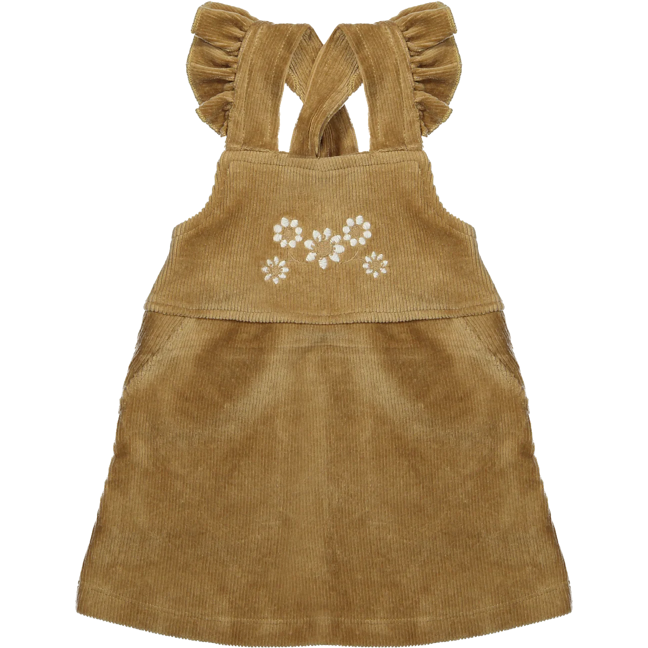 Dit schattige jurkje genaamd Alyssa, combineert een speels ontwerp met een duurzame keuze. Het is gemaakt van een corduroy ribstof bestaande uit 82% biologisch katoen, 15% gerecycled polyester en 3% elastaan. De warme bruine kleur en de ribstructuur geven het een klassieke en stijlvolle uitstraling, terwijl de verstelbare bandjes zorgen voor een perfecte pasvorm.