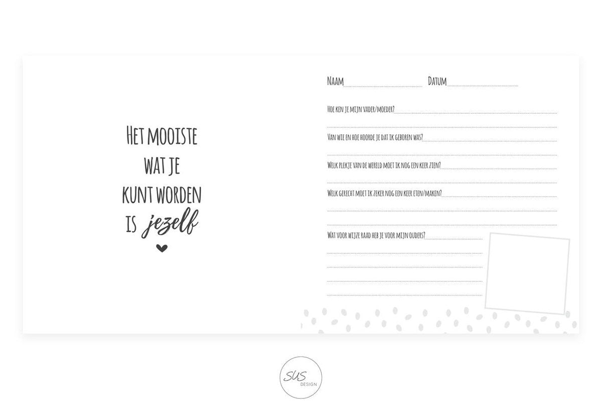 Met vragen zoals "Hoe ken je mijn vader/moeder?" en "Van wie en hoe hoorde je dat ik geboren was?" wordt elk bezoek aangemoedigd om persoonlijke verhalen te delen. Bovendien is er op elke invulpagina ruimte voor een foto van de baby en het bezoek, zodat je later kunt terugkijken op wie er allemaal op kraambezoek zijn geweest.