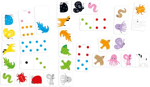 Dit veelzijdige spel biedt verschillende speelmogelijkheden, en je vindt handige ideeën in de bijgeleverde gids. Het delen van speelmomenten met je kind bevordert niet alleen plezier, maar versterkt ook de ouder-kindinteractie. De grote domino-stukken zijn vervaardigd van hoogwaardig, stevig karton, perfect geschikt voor kleine handjes. De handige doos met een stevig handvat maakt het ook een ideaal cadeau.