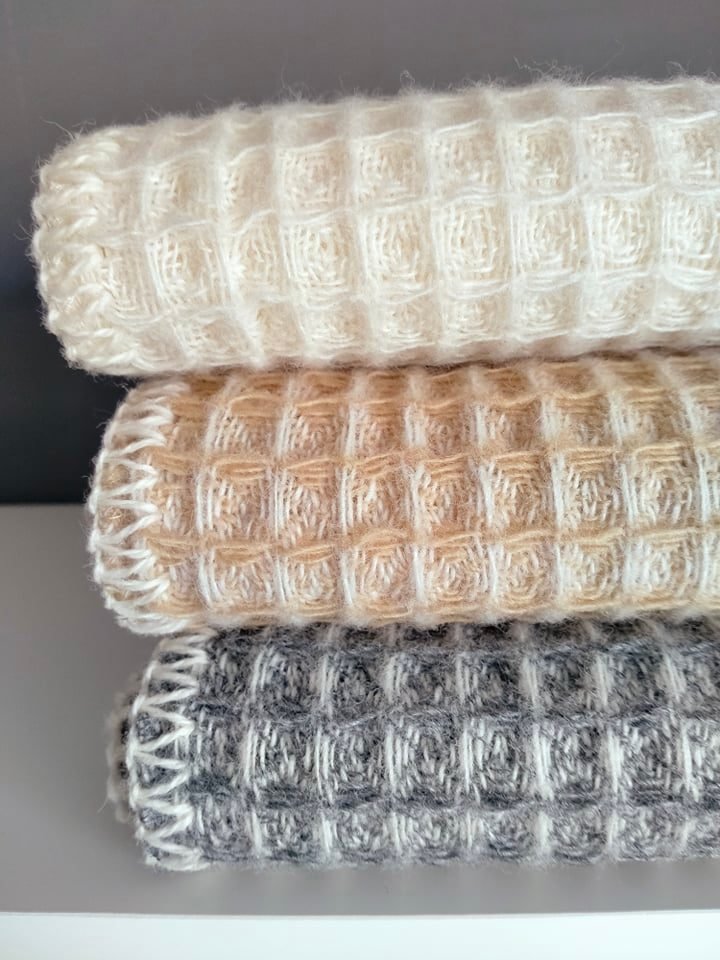 Onze ledikantdekens van wol hebben een afmeting van 130 x 90 cm, perfect passend voor het ledikant van je kleintje.
