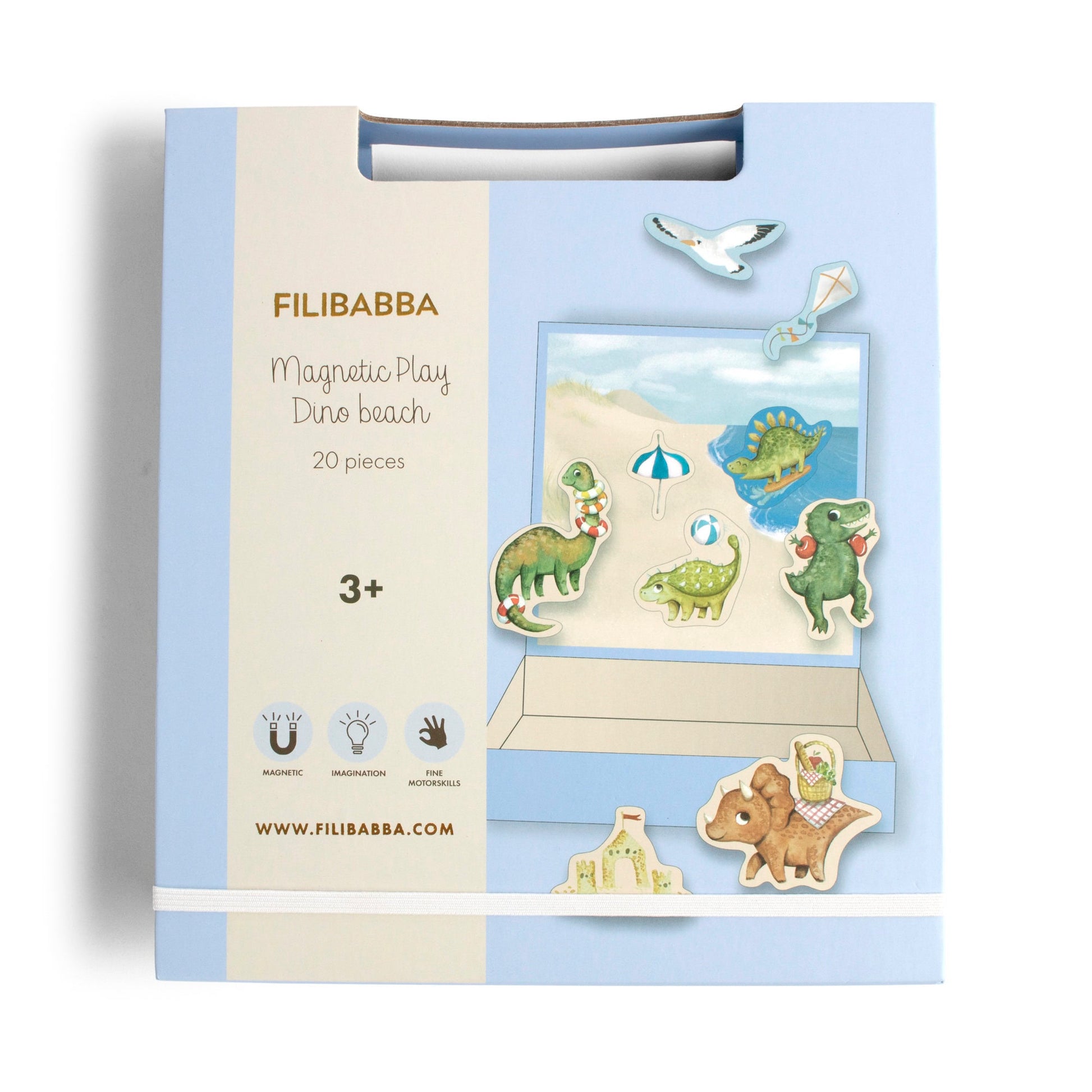 Laten we plezier maken op het strand met de gigantische dinosaurusvriendjes! Het magnetische spel inspireert je kind tot fantasierijk spel en is gemakkelijk mee te nemen onderweg. Dankzij de leuke doos met het magnetische bord blijven de stukken op hun plaats.
