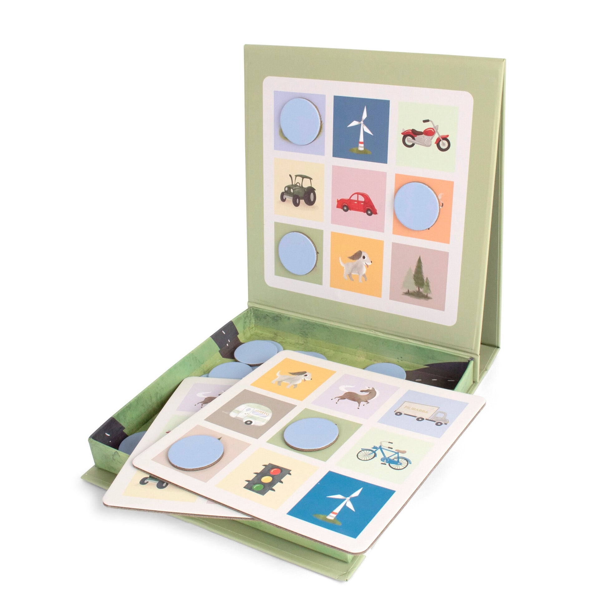 Maak van elke roadtrip een spannend avontuur met Road Trip Bingo. Dit boeiende spel, ontworpen voor 1-3 spelers, helpt kinderen geëntertaind en alert te blijven tijdens autoritten. Het praktische magnetische spel met kleurrijke, handgetekende illustraties biedt schermvrij vermaak voor jong en oud. Dankzij de handige doos met een vast magnetisch speelbord blijven alle onderdelen op hun plaats.