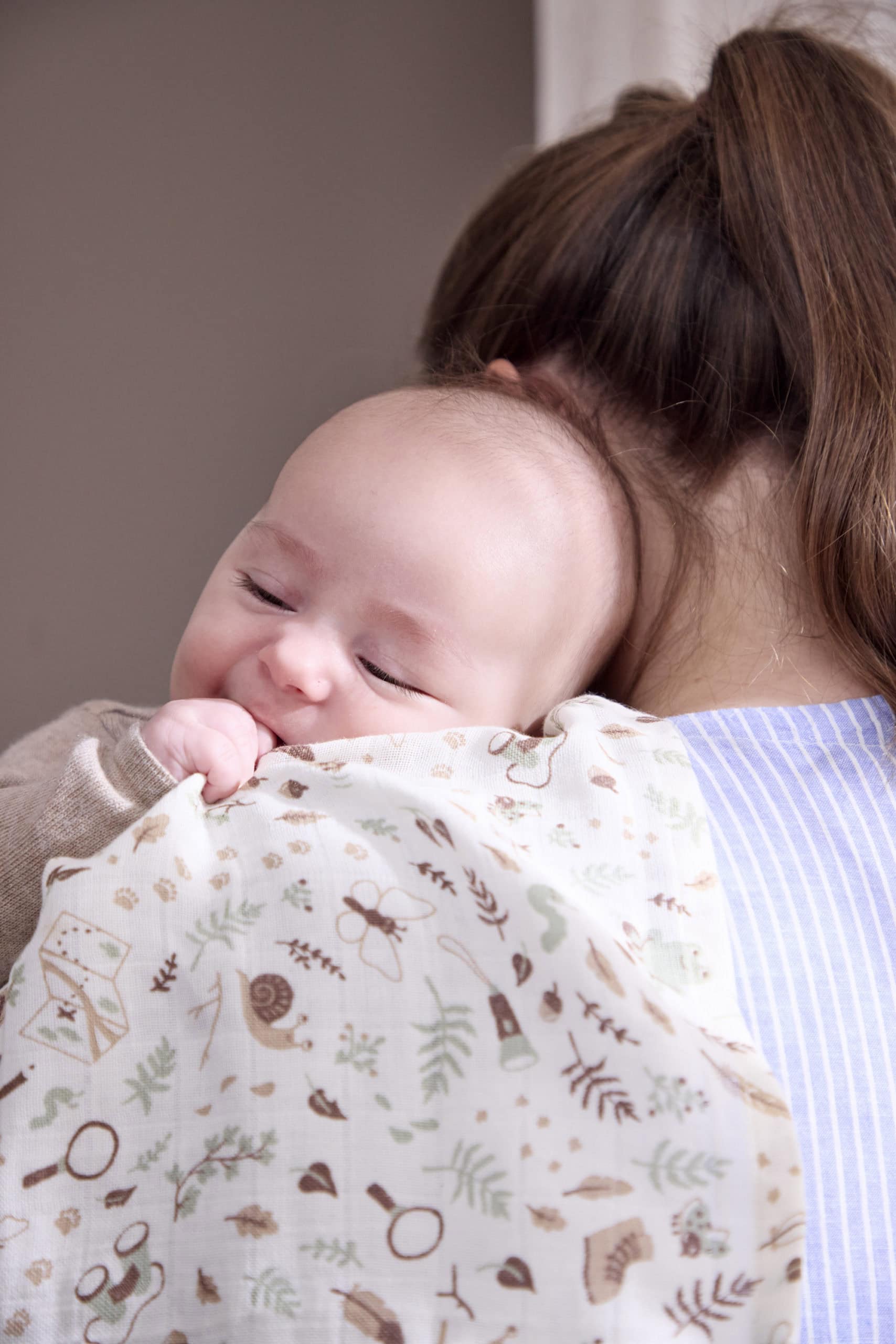 Onze hydrofiele doeken zijn gemaakt van 100% biologisch GOTS-gecertificeerd katoen en kunnen worden gewassen op 40 graden. Houd er rekening mee dat de stof na het wassen iets krimpt. Om veiligheidsredenen raden we aan om een stevige knoop in de hydrofiele doeken te maken wanneer je deze als speelgoed of knuffel gebruikt.