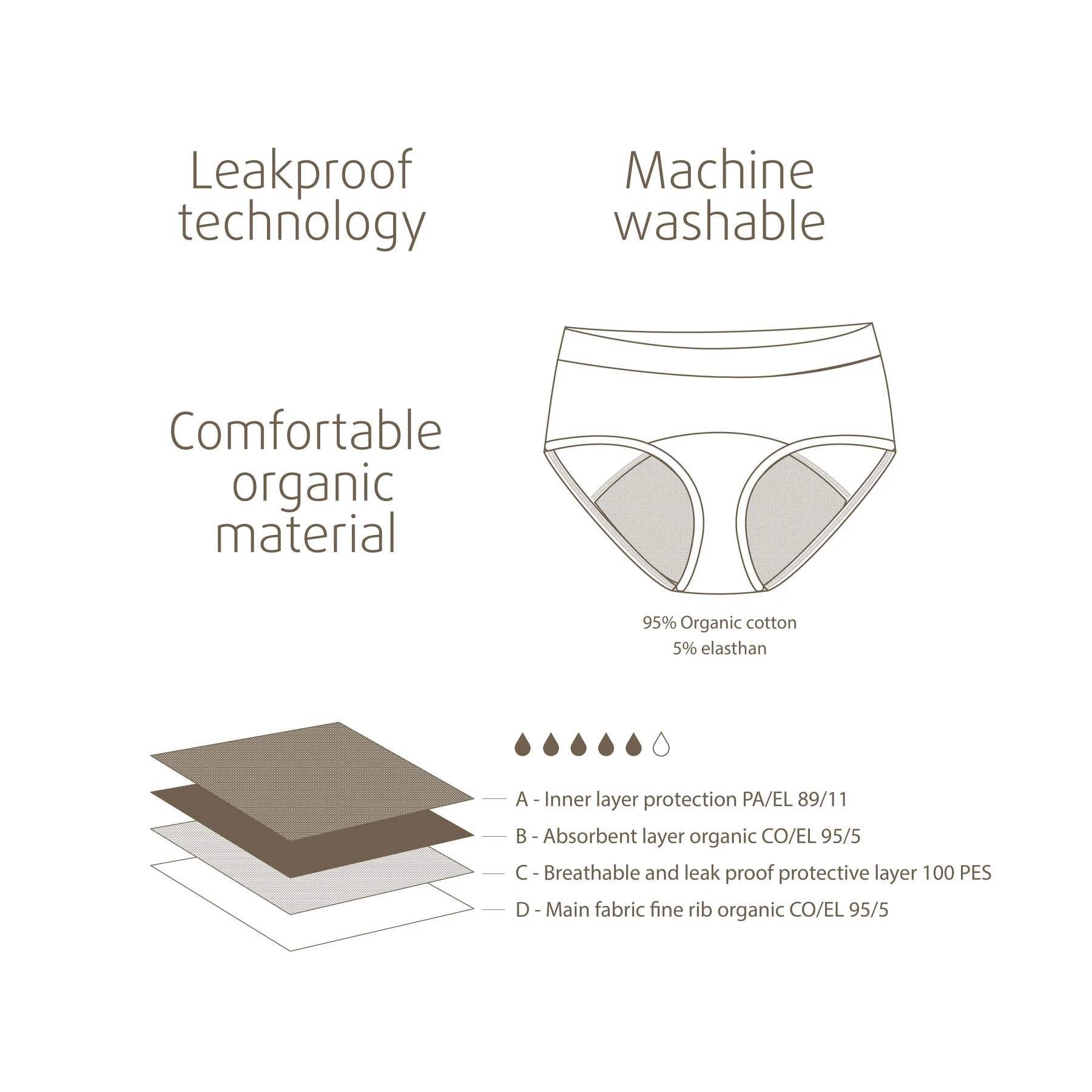 Op zoek naar een comfortabele en duurzame oplossing voor je menstruatie? Kijk dan niet verder dan ons menstruatie ondergoed! Gemaakt van heerlijk zacht biologisch katoen met elastaan, biedt dit ondergoed optimale bescherming en draagt het bij aan een zorgeloze periode.