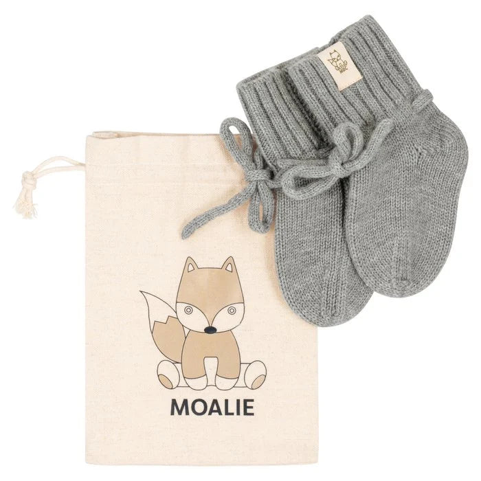 Ontdek de comfortabele wereld van Merino wollen slofjes in een prachtige grijs/groene tint. Deze schattige sokjes worden geleverd in een handig linnen opbergzakje.