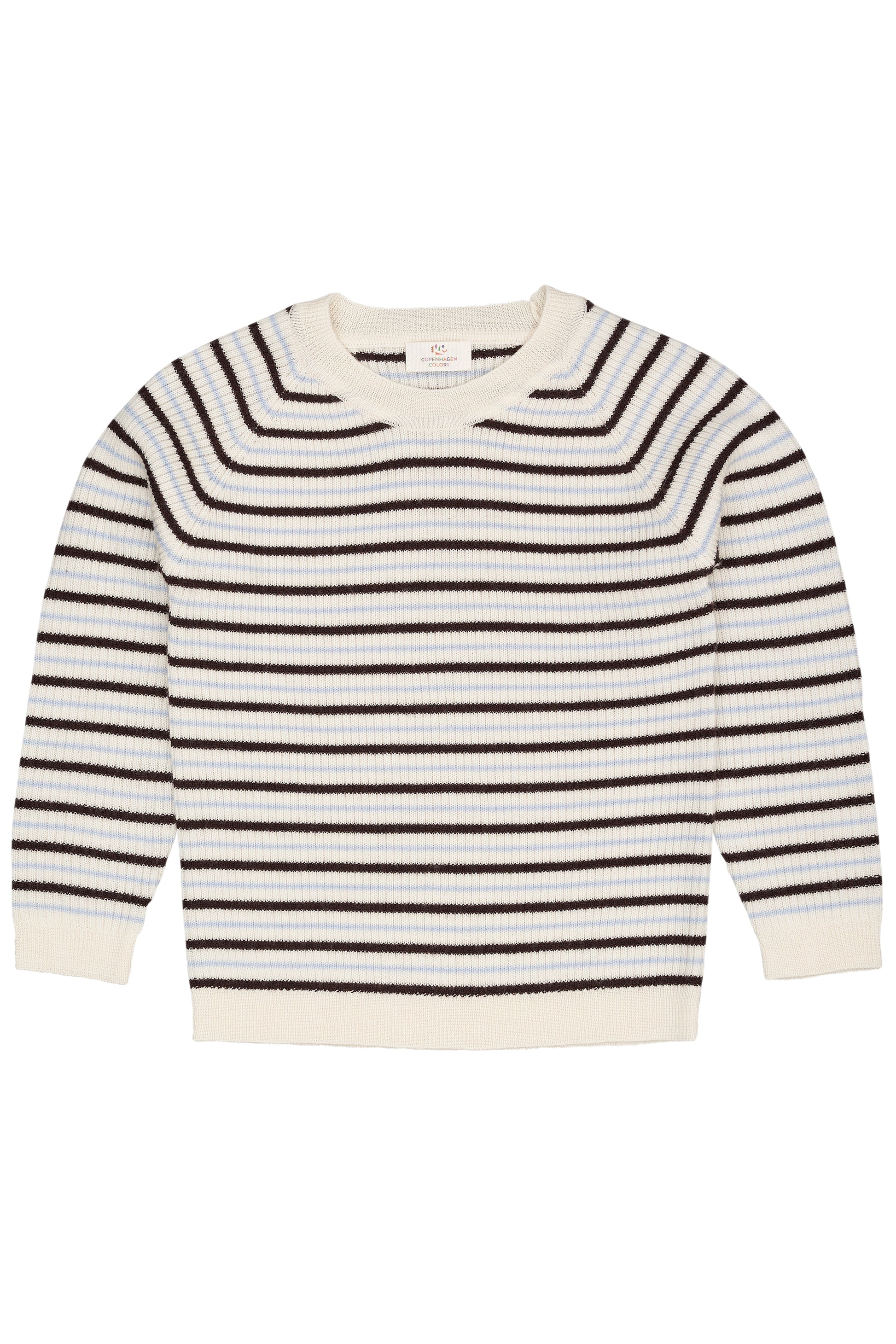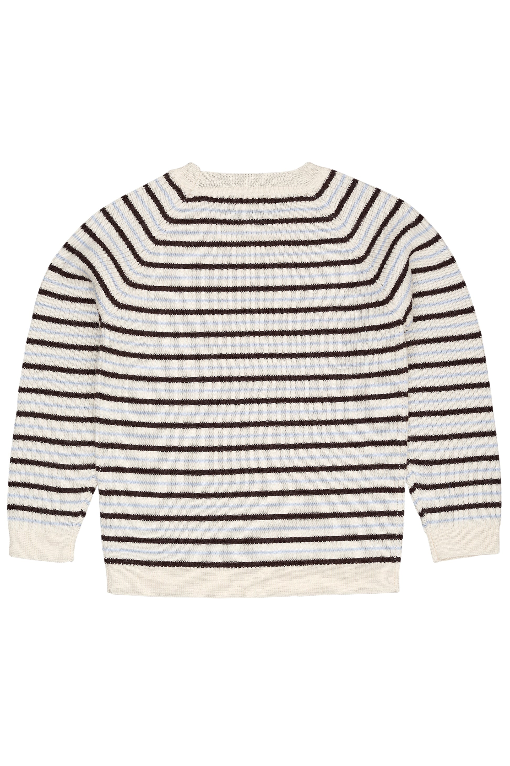 Merino wol classic rib blouse - Cream/dk.brown/dusty blue combi