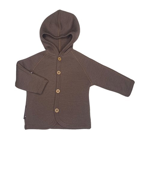 Deze cardigan is gemaakt van de beste kwaliteit merinowol, zowel aan de buitenkant als aan de binnenkant. De wol is bijzonder zacht en voelt heerlijk aan tegen de gevoelige huid van je baby.