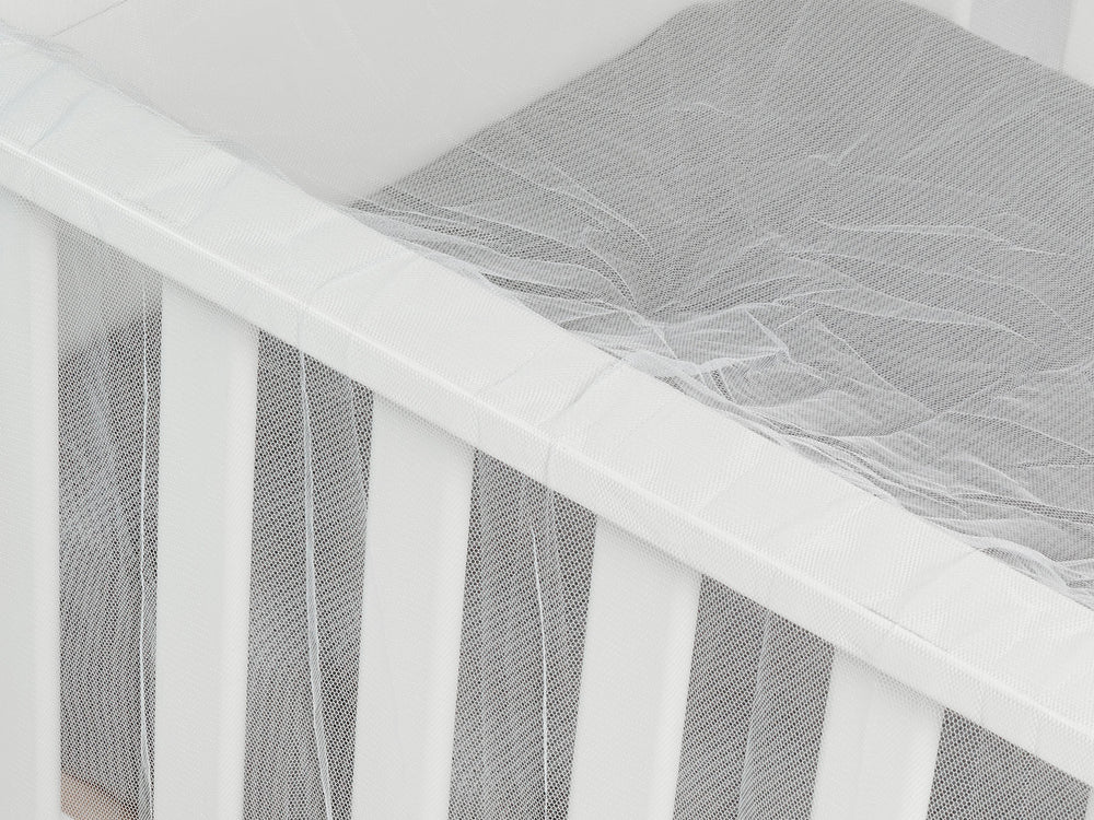 Onmisbaar muskietennet om over de bovenzijde van het ledikant of campingbed te spannen. Het is gemaakt van 100% polyester. Het formaat is 120x65x65 cm. Het muskietennet beschermt jouw baby tegen muggen en ander stekend en zoemend ongedierte. Zo kan je baby heerlijk ongestoord liggen slapen of spelen. Handig voor thuis en handig voor op de camping. Dit antimuggennet is ook verkrijgbaar voor een autostoeltje en voor de kinderwagen.