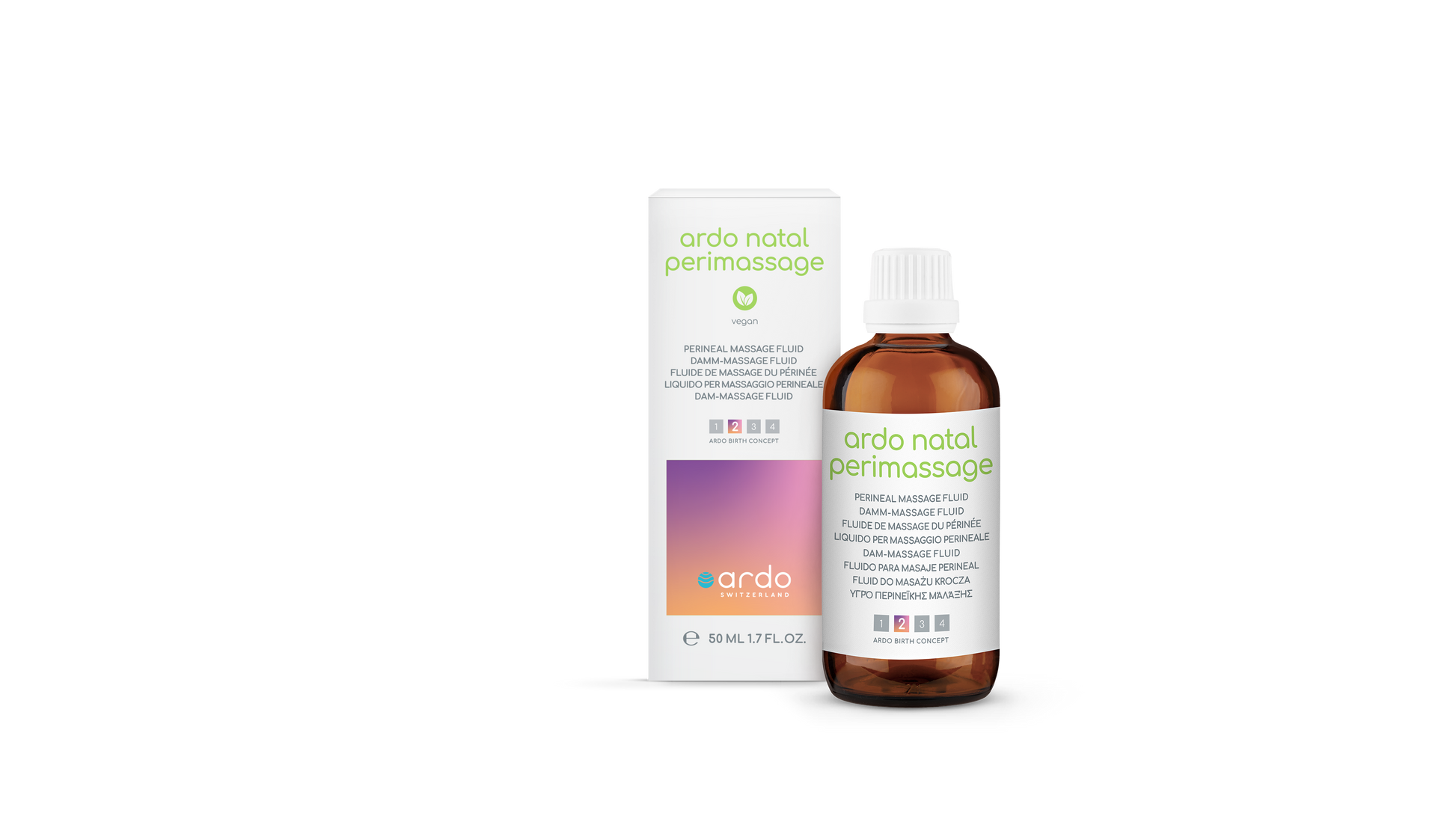 Gebruik Ardo Natal Perimassage-olie om het perineum te masseren. Zo wordt de kans op inscheuren of inknippen tijdens de bevalling aanzienlijk kleiner en zal je bekkenbodem na de bevalling sneller herstellen.
