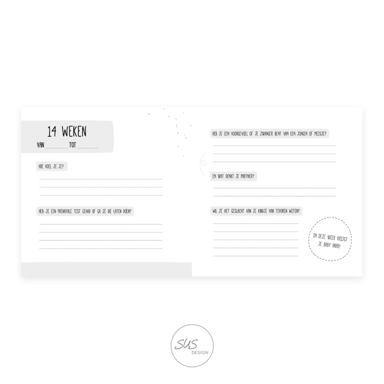 Ben je op zoek naar een manier om jouw zwangerschapstijd op een mooie en waardevolle manier vast te leggen? Dan is het negen maandenboek van SUS design precies wat je zoekt! Met dit boek kun je al jouw bijzondere momenten, gedachten en gevoelens van deze bijzondere periode vastleggen, zodat je deze herinneringen voor altijd kunt koesteren.