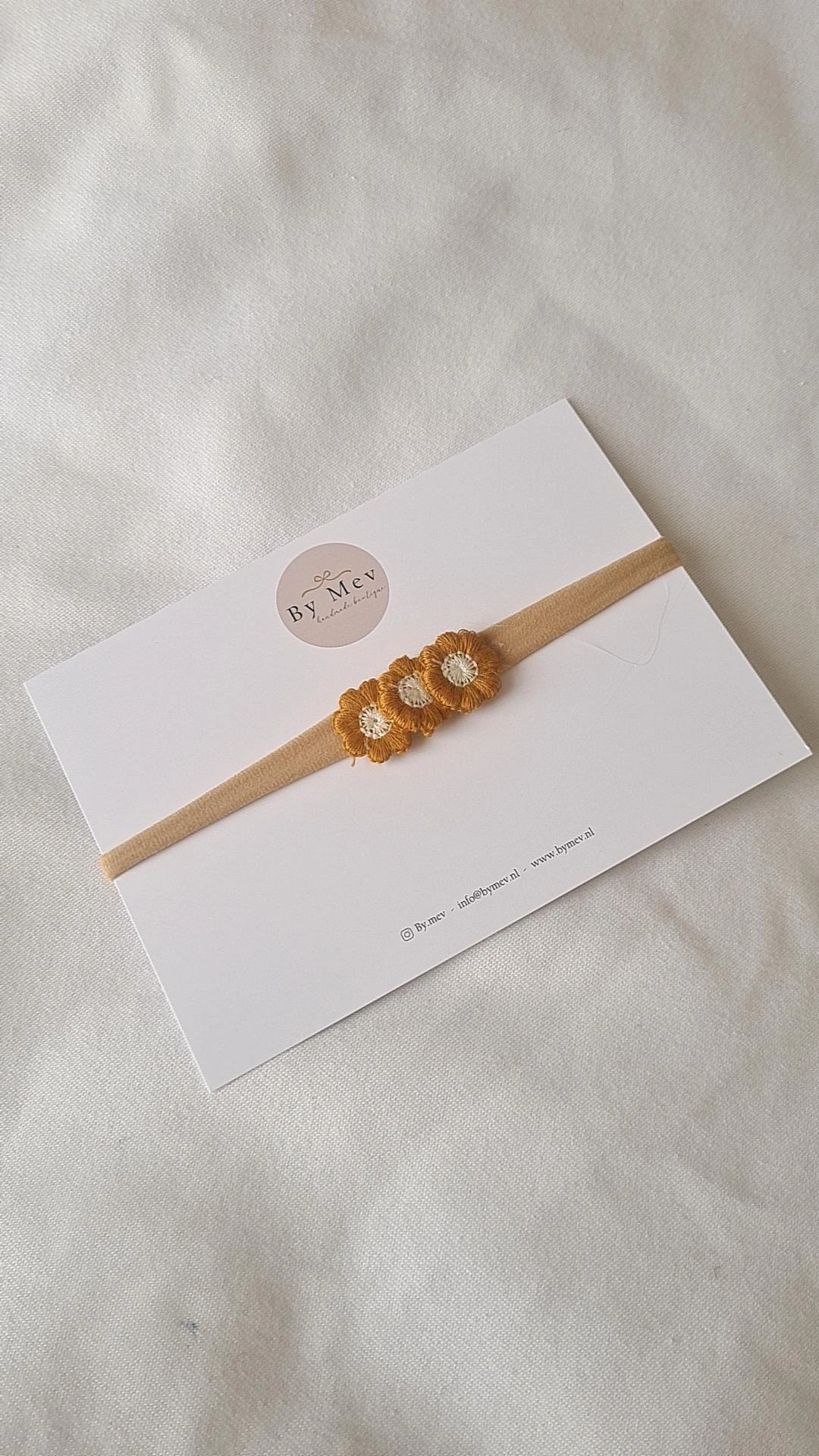 Deze embrodery bloemen zijn favoriet ! 3 gehaakte bloemen worden bevestigd aan een nylon haarband. Geschikt tot 18maanden