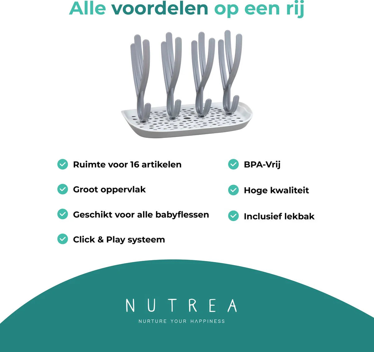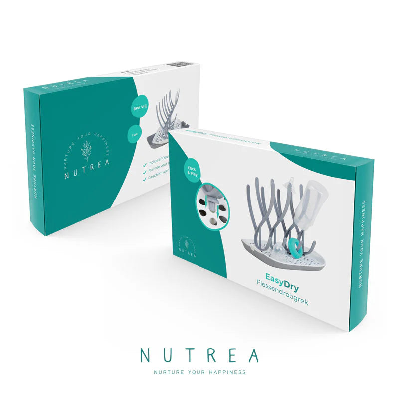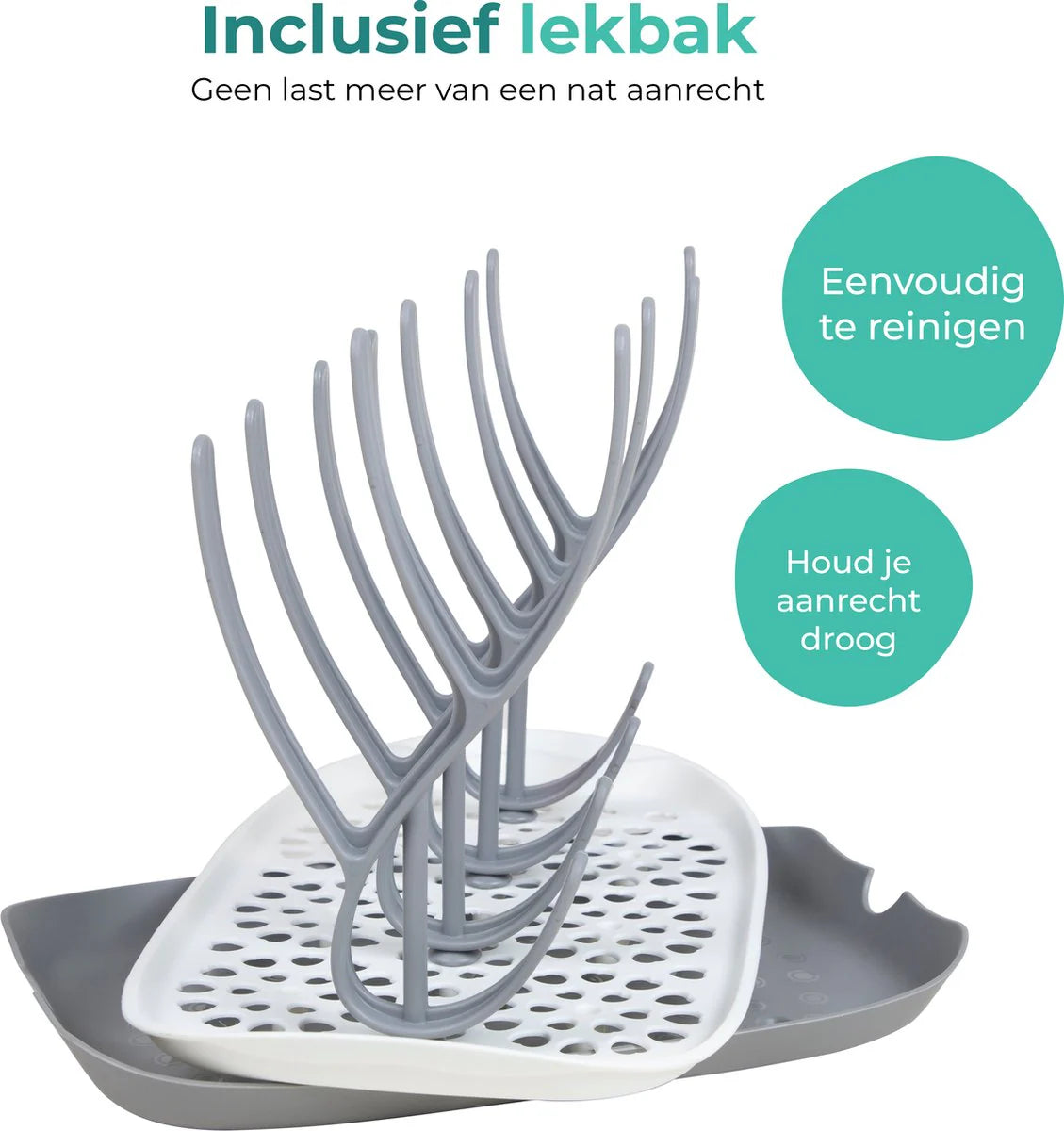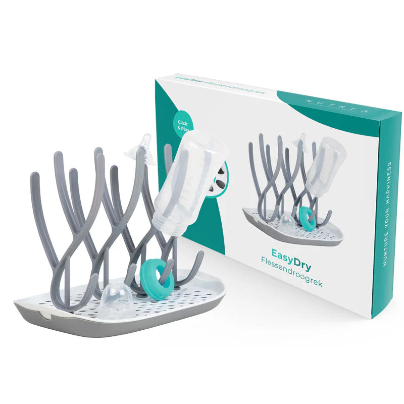Nutrea EasyDry – Flessen Droogrek Baby – Afdruiprek Babyfles – Droogrek voor Flessen – Inclusief Lekbak – Grijs/Wit