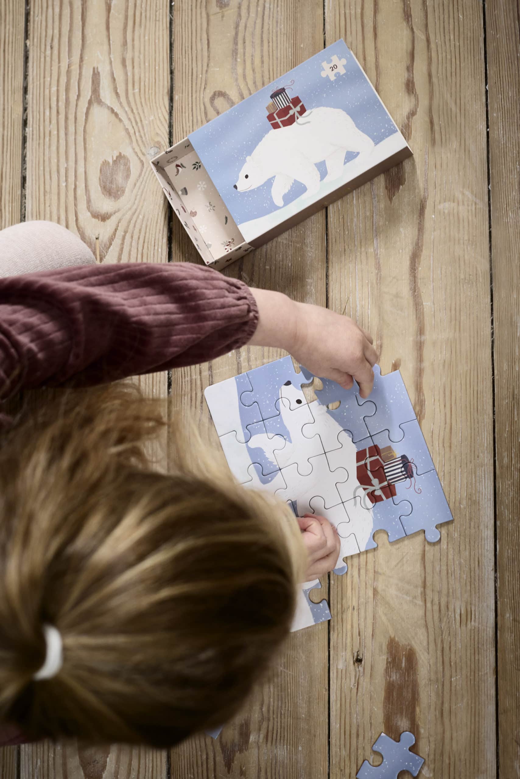Met vier heerlijke winterthema-puzzels, elk verpakt in een eigen compacte doos, is deze set vier perfecte adventscadeau's of kerstcadeautjes.