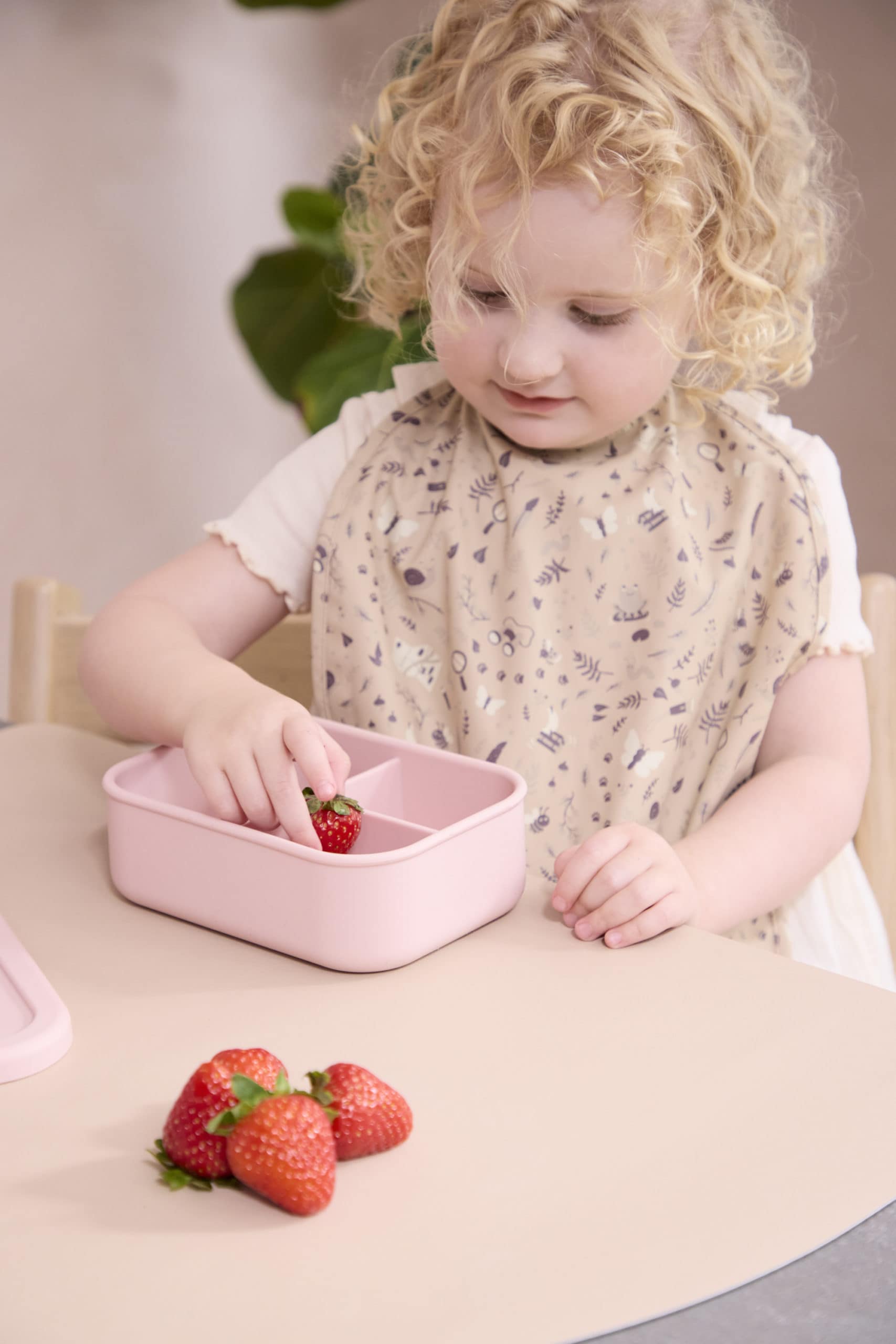 Schattige en praktische lunchbox van 100% zacht, voedselveilig siliconen. Met zijn inhoud van 700 ml is er genoeg ruimte voor snacks. De lunchbox is verdeeld in 3 kleinere compartimenten, zodat het eten gescheiden kan blijven, zoals veel kinderen dat prefereren. Het flexibele deksel sluit goed af, zodat alles op zijn plaats blijft.