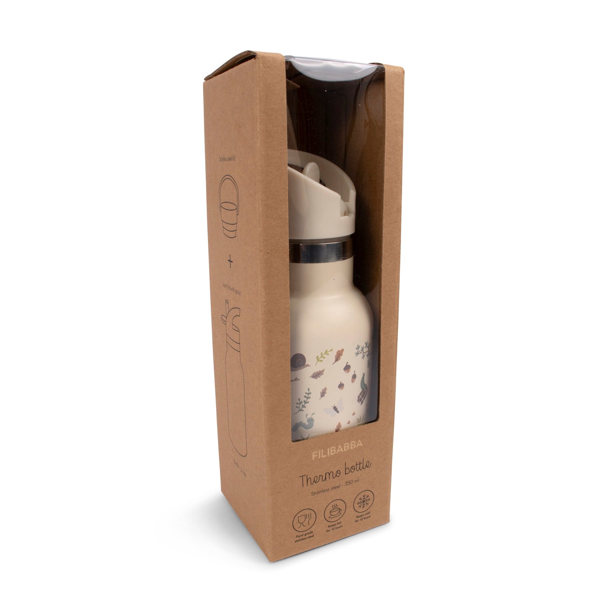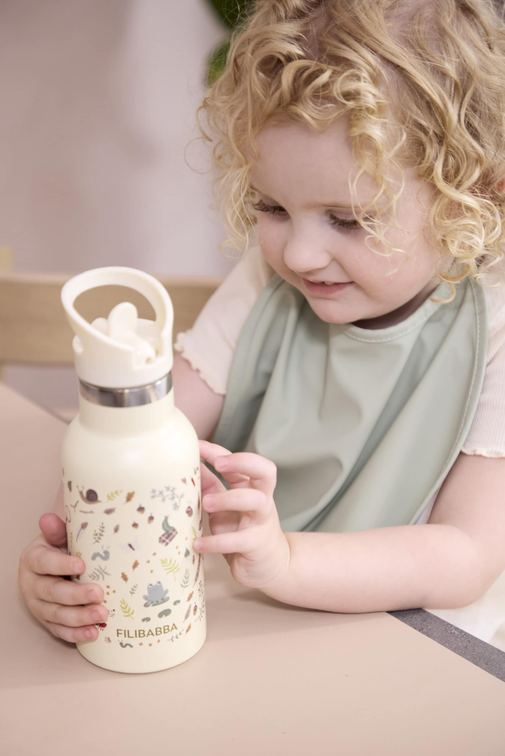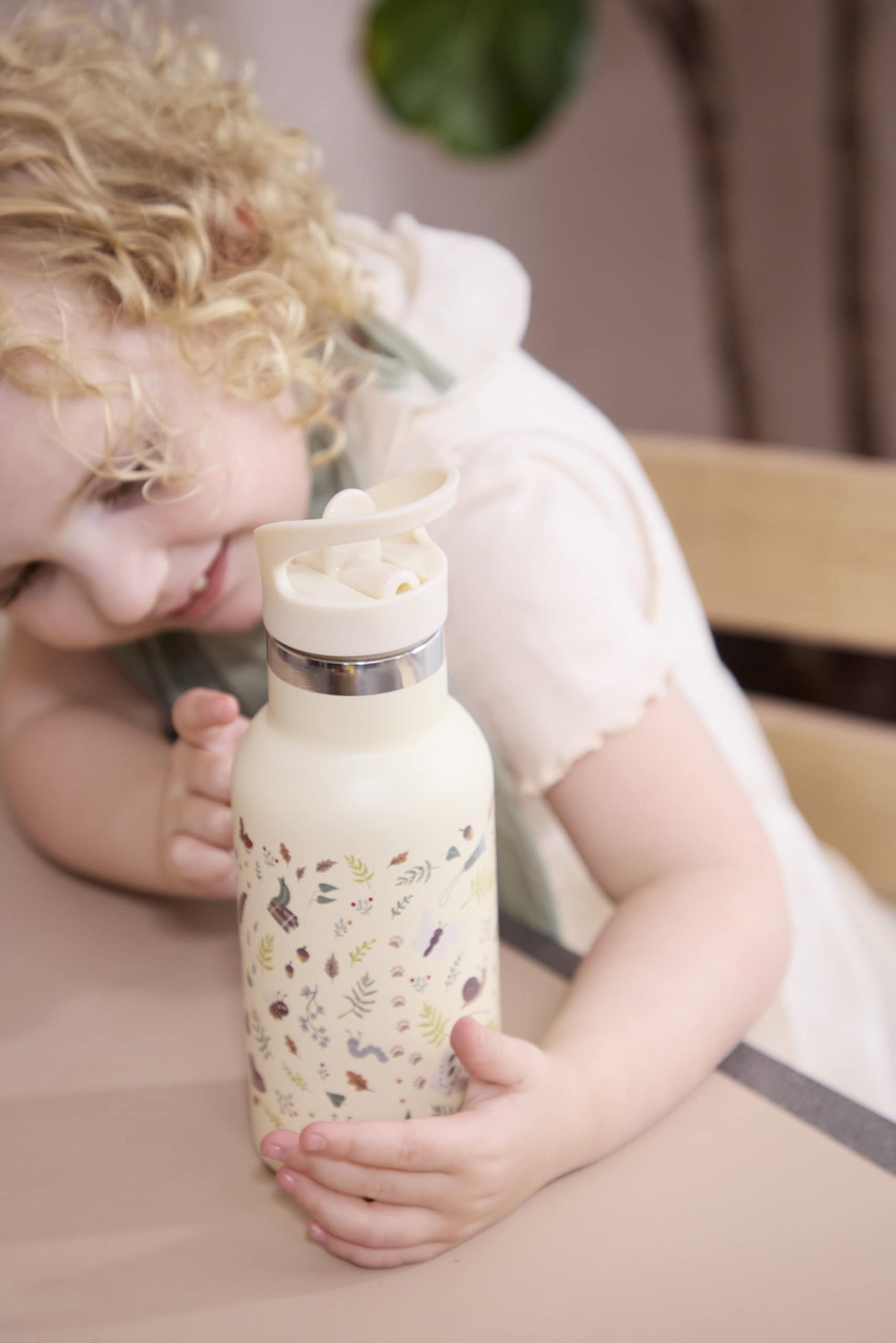 Onze roestvrijstalen drinkfles met grillige bosvondsten wordt geleverd met twee doppen: een klassieke schroefdop en een deksel met een geïntegreerd rietje. Op deze manier past de fles zich aan jouw voorkeuren aan - elke dag.