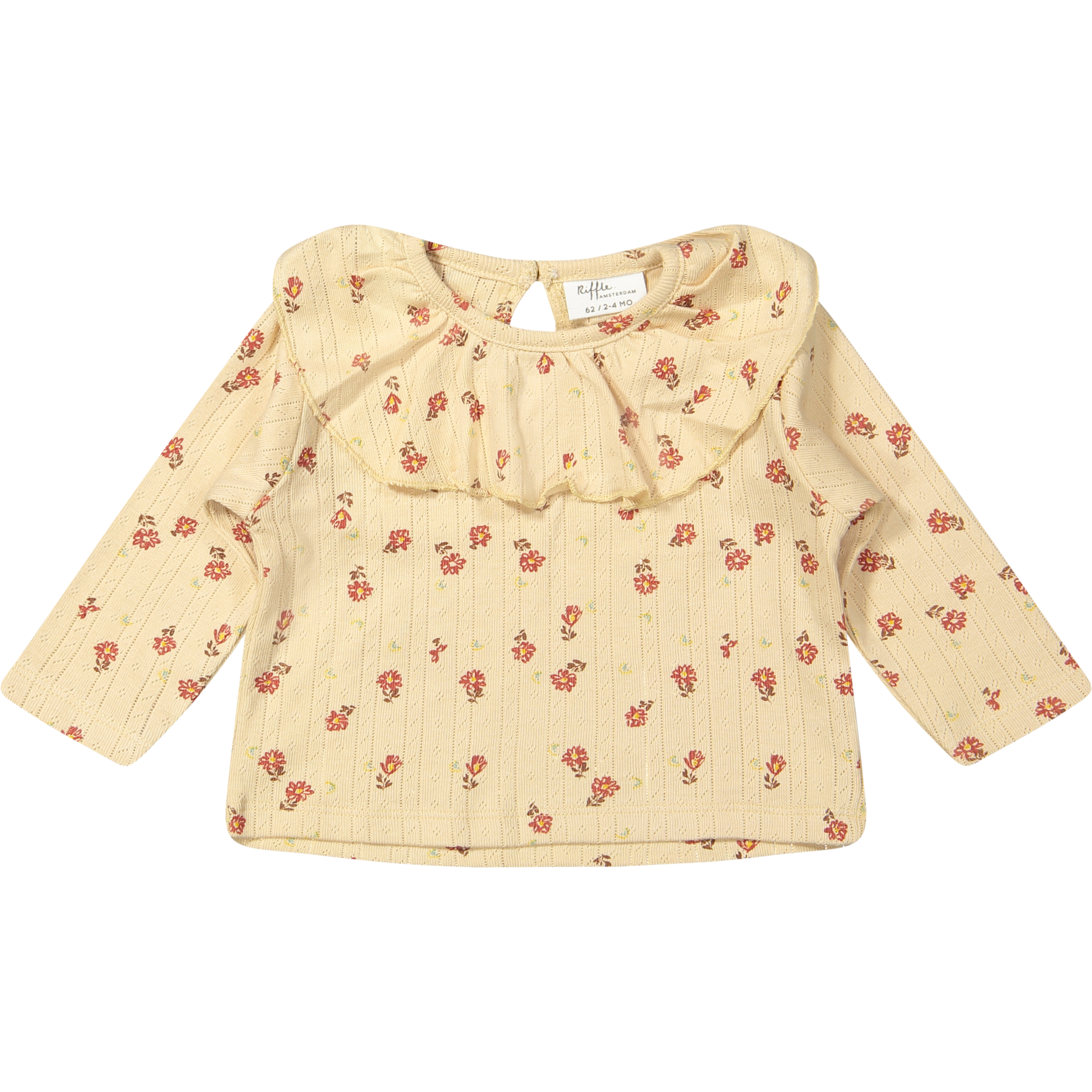 Dit lieve shirtje is te schattig! Het zachte materiaal en de speelse bloemenprint maken het topje super comfortabel. Verkrijgbaar in maat 50, 56 en 62.
