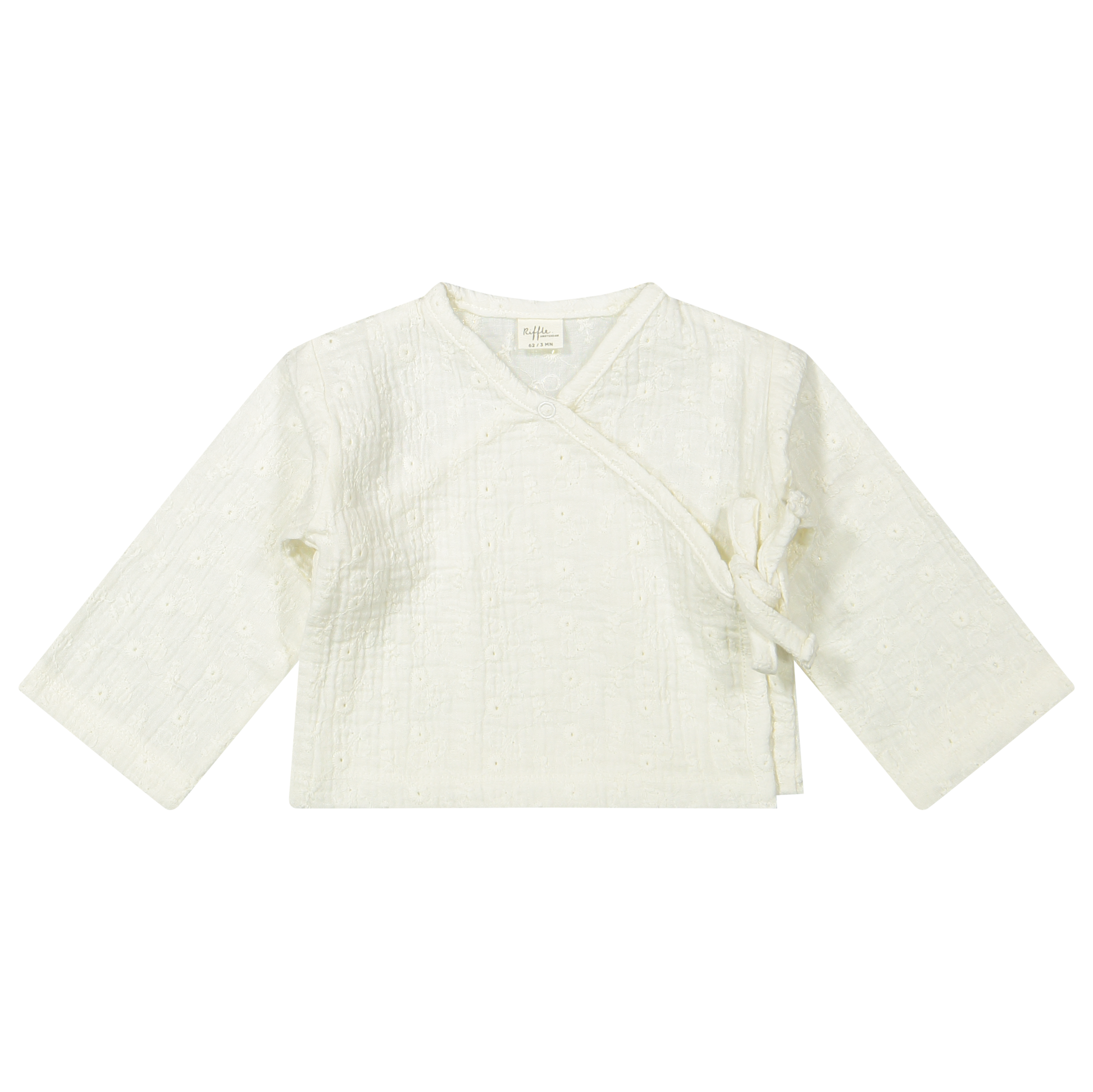 Makkelijk aan- en uit te trekken dankzij het wikkelmodel. Het zachte materiaal maakt het topje super comfortabel. Verkrijgbaar in maat 50, 56 en 62.