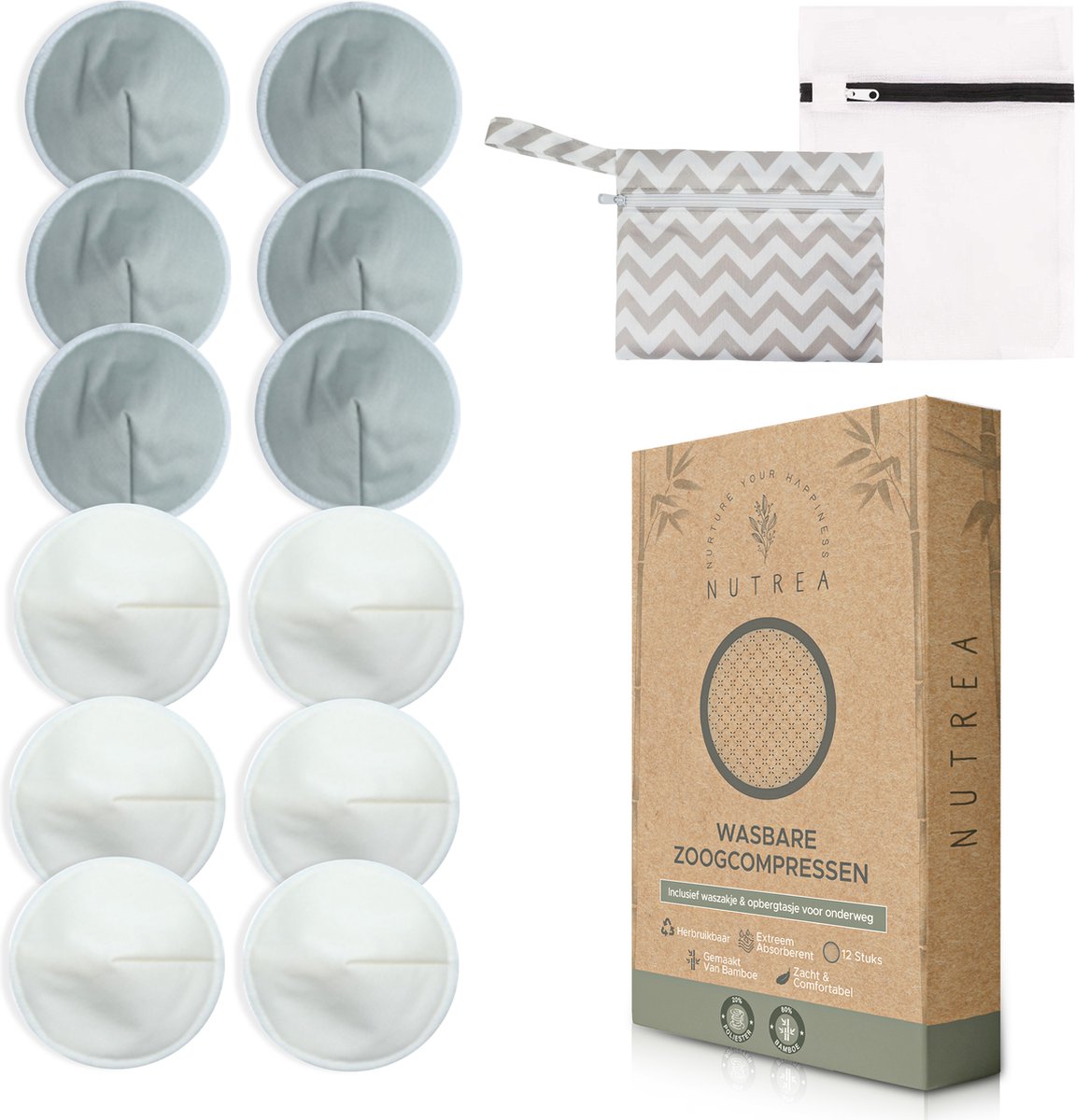 Wasbare Zoogcompressen - 12 stuks met opbergzakje en waszakje