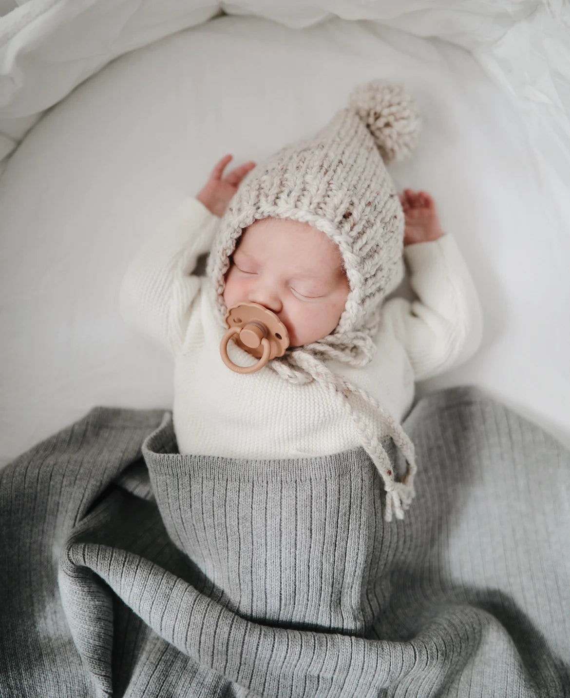 Wiegdeken - Knitted Ribbed - Grey melange