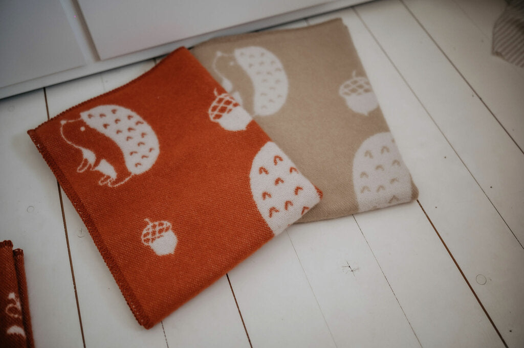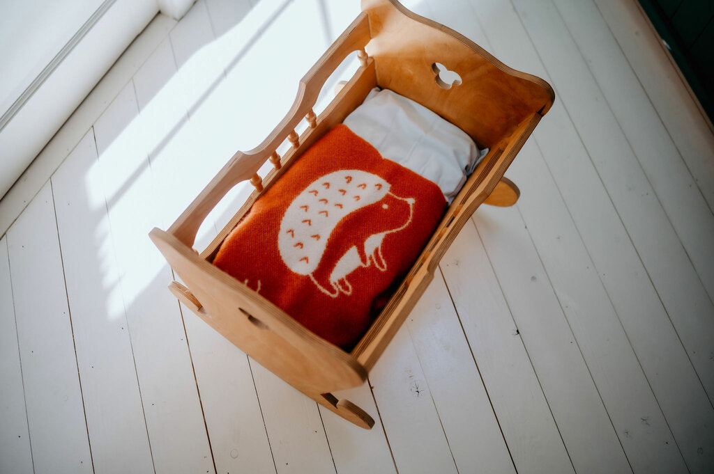 Onze wiegdekens van wol hebben een afmeting van 90 x 65 cm, perfect passend voor de wieg van je kleintje.